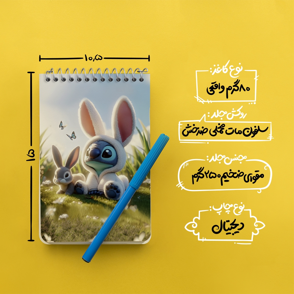 برند خندالو در زمینه تولید انواع دفاتر فانتزی و تحصیلی فعالیت میکند که به دلیل جذابیت ظاهری و طرح های متنوع طرفداران زیادی دارد. دفتر یادداشت خندالو طرح استیچ (Stitch) محصولی مناسب برای همه عاشقان لوازم التحریر است و همچنین همه کسانی که بنا به موقعیت تحصیل یا شغلشان با دفتر و نوشت افزار زیاد سر و کار دارند. در تولید دفتر یادداشت خندالو طرح استیچ (Stitch) از نوع صحافی فنر مارپیچ استفاده شده که در این نوع صحافی برگه‌ها به راحتی چرخیده و یا بیرون آورده می شوند.