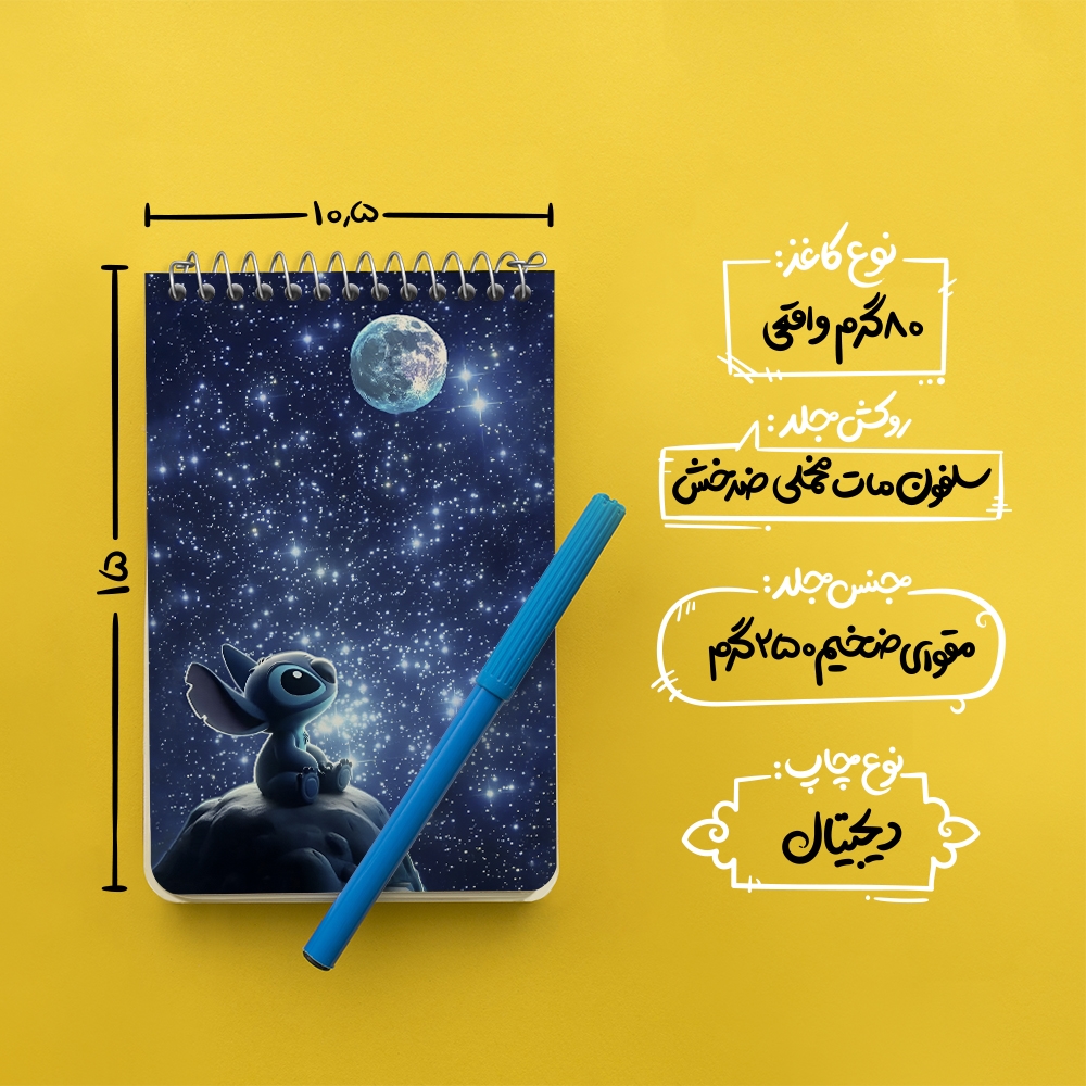 برند خندالو در زمینه تولید انواع دفاتر فانتزی و تحصیلی فعالیت میکند که به دلیل جذابیت ظاهری و طرح های متنوع طرفداران زیادی دارد. دفتر یادداشت خندالو طرح استیچ (Stitch) محصولی مناسب برای همه عاشقان لوازم التحریر است و همچنین همه کسانی که بنا به موقعیت تحصیل یا شغلشان با دفتر و نوشت افزار زیاد سر و کار دارند. در تولید دفتر یادداشت خندالو طرح استیچ (Stitch) از نوع صحافی فنر مارپیچ استفاده شده که در این نوع صحافی برگه‌ها به راحتی چرخیده و یا بیرون آورده می شوند.