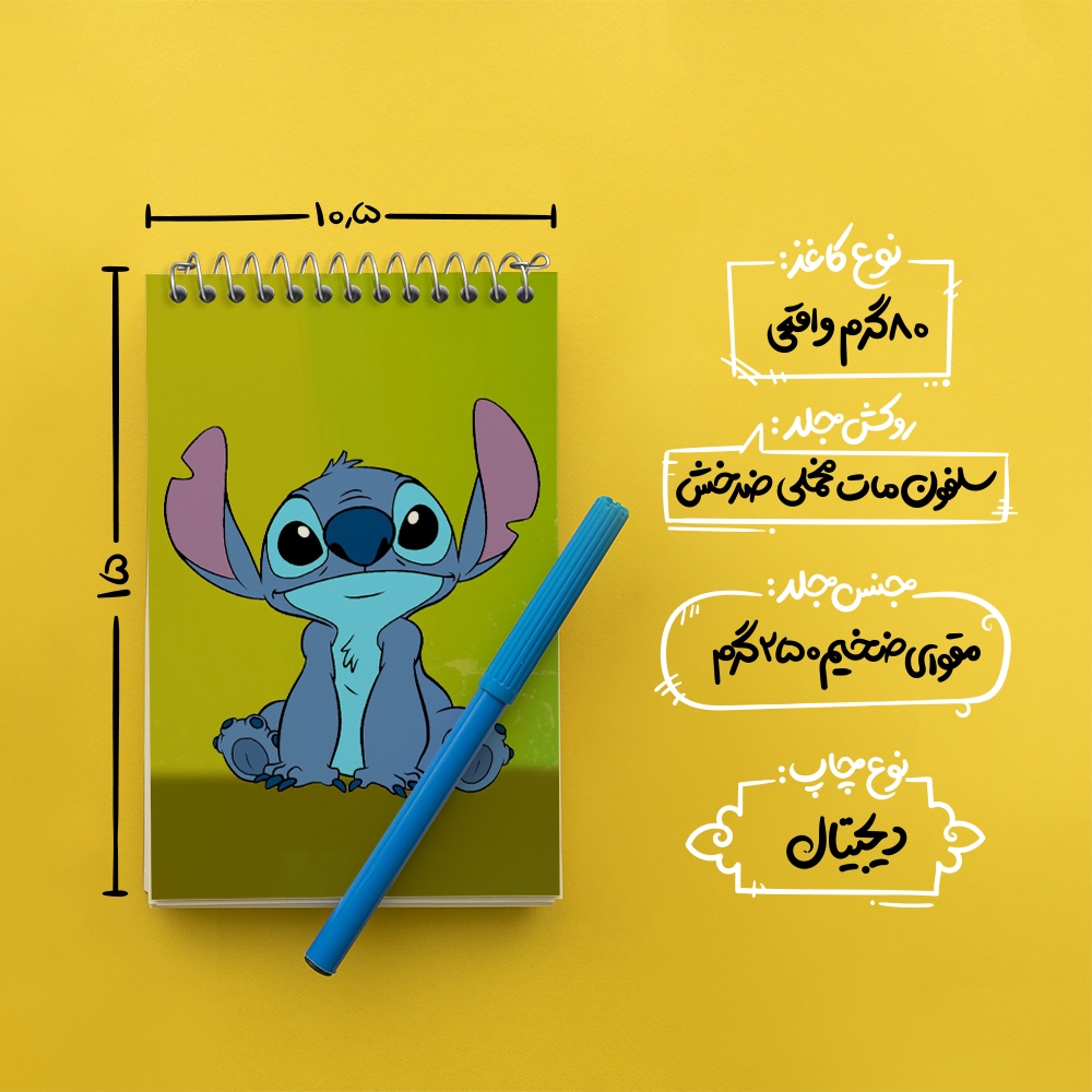 برند خندالو در زمینه تولید انواع دفاتر فانتزی و تحصیلی فعالیت میکند که به دلیل جذابیت ظاهری و طرح های متنوع طرفداران زیادی دارد. دفتر یادداشت خندالو طرح استیچ (Stitch) محصولی مناسب برای همه عاشقان لوازم التحریر است و همچنین همه کسانی که بنا به موقعیت تحصیل یا شغلشان با دفتر و نوشت افزار زیاد سر و کار دارند. در تولید دفتر یادداشت خندالو طرح استیچ (Stitch) از نوع صحافی فنر مارپیچ استفاده شده که در این نوع صحافی برگه‌ها به راحتی چرخیده و یا بیرون آورده می شوند.