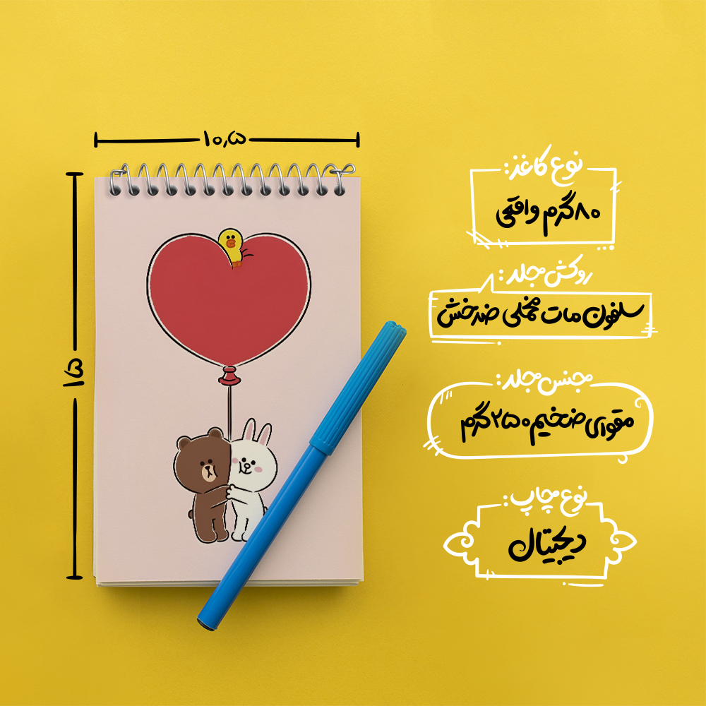 برند خندالو در زمینه تولید انواع دفاتر فانتزی و تحصیلی فعالیت میکند که به دلیل جذابیت ظاهری و طرح های متنوع طرفداران زیادی دارد. دفتر یادداشت خندالو طرح استیکر لاین محصولی مناسب برای همه عاشقان لوازم التحریر است و همچنین همه کسانی که بنا به موقعیت تحصیل یا شغلشان با دفتر و نوشت افزار زیاد سر و کار دارند. در تولید دفتر یادداشت خندالو طرح استیکر لاین از نوع صحافی فنر مارپیچ استفاده شده که در این نوع صحافی برگهها به راحتی چرخیده و یا بیرون آورده می شوند. دفتر های خندالو دارای جلد انعطاف پذیر از جنس مقوای گلاسه 250 گرم با روکش سلفون مات مخملی است که به شما امکان میدهد از دفتر خود بدون اینکه نگرانی از شکستن یا خراب شدن جلد را داشته باشید استفاده کنید و همچنین در این دفاتر از کاغذ 80 گرم با کیفیت استفاده شده که باعث میشود هنگام نوشتن به خوبی جوهر قلم بر روی صفحه نشسته و از خط خوردگیها جلوگیری کند. دفتر یادداشت خندالو با جنس و دوام مناسب، برگه های کاملاً سفید و خطوط طوسی دقیق را داراست که انسان را به نوشتن منظم و زیبا ترغیب میکند. طراحی کاملاً مناسب این دفاتر، به همراه کیفیت بالا، از آن یک محصول مورد علاقه و قابل اعتماد برای همه مقاطع تحصیلی میسازد. دفتر یادداشت خندالو طرح استیکر لاین انتخابی هوشمندانه و مناسب برای افرادی است که به دنبال دفتری با کیفیت و کاربرد عالی هستند. این دفتر، همراه خوبی برای شما در تمام مراحل تحصیل و کار خواهد بود و تجربهای لذتبخش از نوشتن و آموختن را به شما هدیه میدهد.