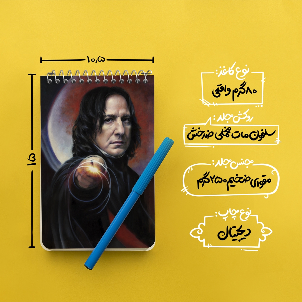 برند خندالو در زمینه تولید انواع دفاتر فانتزی و تحصیلی فعالیت میکند که به دلیل جذابیت ظاهری و طرح های متنوع طرفداران زیادی دارد. دفتر یادداشت خندالو طرح اسنیپ هری پاتر محصولی مناسب برای همه عاشقان لوازم التحریر است و همچنین همه کسانی که بنا به موقعیت تحصیل یا شغلشان با دفتر و نوشت افزار زیاد سر و کار دارند. در تولید دفتر یادداشت خندالو طرح اسنیپ هری پاتر از نوع صحافی فنر مارپیچ استفاده شده که در این نوع صحافی برگه‌ها به راحتی چرخیده و یا بیرون آورده می شوند.