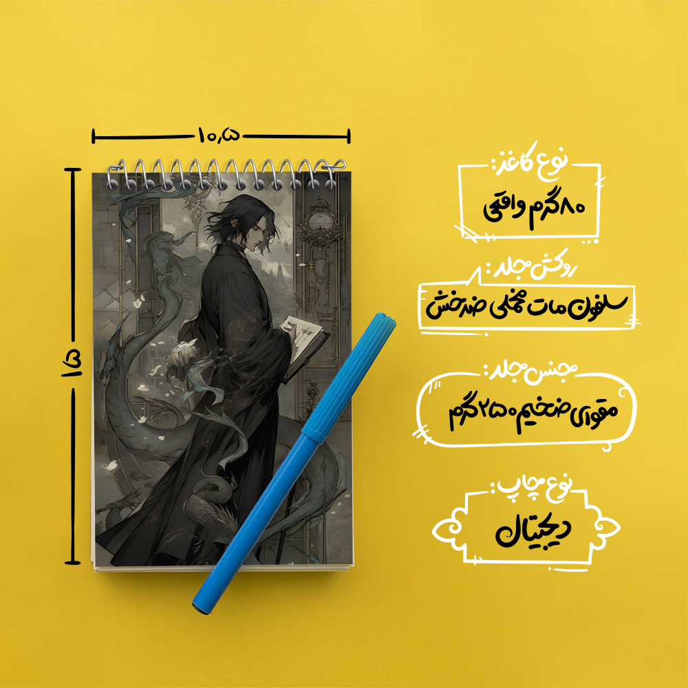 برند خندالو در زمینه تولید انواع دفاتر فانتزی و تحصیلی فعالیت میکند که به دلیل جذابیت ظاهری و طرح های متنوع طرفداران زیادی دارد. دفتر یادداشت خندالو طرح اسنیپ هری پاتر (Harry Potter) محصولی مناسب برای همه عاشقان لوازم التحریر است و همچنین همه کسانی که بنا به موقعیت تحصیل یا شغلشان با دفتر و نوشت افزار زیاد سر و کار دارند. در تولید دفتر یادداشت خندالو طرح اسنیپ هری پاتر (Harry Potter) از نوع صحافی فنر مارپیچ استفاده شده که در این نوع صحافی برگهها به راحتی چرخیده و یا بیرون آورده می شوند. دفتر های خندالو دارای جلد انعطاف پذیر از جنس مقوای گلاسه 250 گرم با روکش سلفون مات مخملی است که به شما امکان میدهد از دفتر خود بدون اینکه نگرانی از شکستن یا خراب شدن جلد را داشته باشید استفاده کنید و همچنین در این دفاتر از کاغذ 80 گرم با کیفیت استفاده شده که باعث میشود هنگام نوشتن به خوبی جوهر قلم بر روی صفحه نشسته و از خط خوردگیها جلوگیری کند. دفتر یادداشت خندالو با جنس و دوام مناسب، برگه های کاملاً سفید و خطوط طوسی دقیق را داراست که انسان را به نوشتن منظم و زیبا ترغیب میکند. طراحی کاملاً مناسب این دفاتر، به همراه کیفیت بالا، از آن یک محصول مورد علاقه و قابل اعتماد برای همه مقاطع تحصیلی میسازد. دفتر یادداشت خندالو طرح اسنیپ هری پاتر (Harry Potter) انتخابی هوشمندانه و مناسب برای افرادی است که به دنبال دفتری با کیفیت و کاربرد عالی هستند. این دفتر، همراه خوبی برای شما در تمام مراحل تحصیل و کار خواهد بود و تجربهای لذتبخش از نوشتن و آموختن را به شما هدیه میدهد.