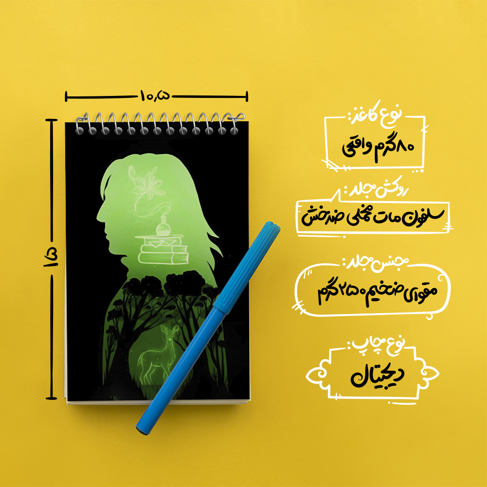 برند خندالو در زمینه تولید انواع دفاتر فانتزی و تحصیلی فعالیت میکند که به دلیل جذابیت ظاهری و طرح های متنوع طرفداران زیادی دارد. دفتر یادداشت خندالو طرح اسنیپ هری پاتر (Harry Potter) محصولی مناسب برای همه عاشقان لوازم التحریر است و همچنین همه کسانی که بنا به موقعیت تحصیل یا شغلشان با دفتر و نوشت افزار زیاد سر و کار دارند. در تولید دفتر یادداشت خندالو طرح اسنیپ هری پاتر (Harry Potter) از نوع صحافی فنر مارپیچ استفاده شده که در این نوع صحافی برگهها به راحتی چرخیده و یا بیرون آورده می شوند. دفتر های خندالو دارای جلد انعطاف پذیر از جنس مقوای گلاسه 250 گرم با روکش سلفون مات مخملی است که به شما امکان میدهد از دفتر خود بدون اینکه نگرانی از شکستن یا خراب شدن جلد را داشته باشید استفاده کنید و همچنین در این دفاتر از کاغذ 80 گرم با کیفیت استفاده شده که باعث میشود هنگام نوشتن به خوبی جوهر قلم بر روی صفحه نشسته و از خط خوردگیها جلوگیری کند. دفتر یادداشت خندالو با جنس و دوام مناسب، برگه های کاملاً سفید و خطوط طوسی دقیق را داراست که انسان را به نوشتن منظم و زیبا ترغیب میکند. طراحی کاملاً مناسب این دفاتر، به همراه کیفیت بالا، از آن یک محصول مورد علاقه و قابل اعتماد برای همه مقاطع تحصیلی میسازد. دفتر یادداشت خندالو طرح اسنیپ هری پاتر (Harry Potter) انتخابی هوشمندانه و مناسب برای افرادی است که به دنبال دفتری با کیفیت و کاربرد عالی هستند. این دفتر، همراه خوبی برای شما در تمام مراحل تحصیل و کار خواهد بود و تجربهای لذتبخش از نوشتن و آموختن را به شما هدیه میدهد.