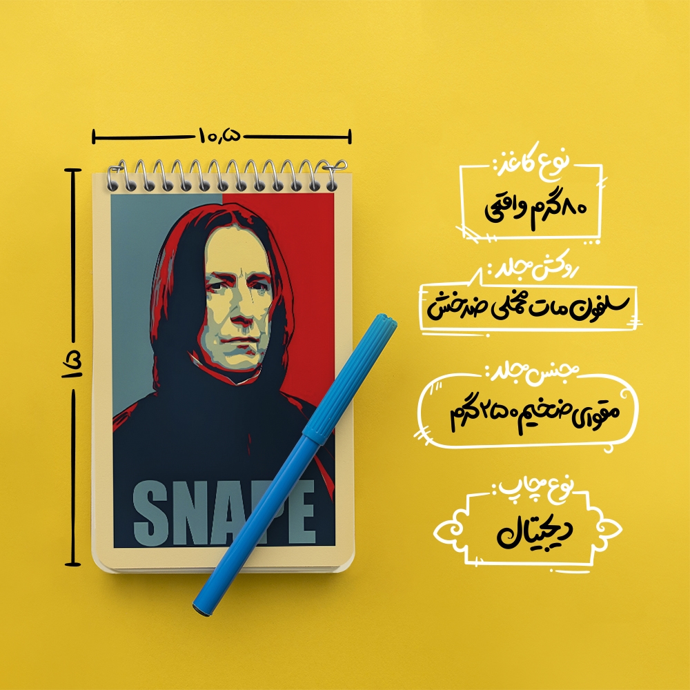 برند خندالو در زمینه تولید انواع دفاتر فانتزی و تحصیلی فعالیت میکند که به دلیل جذابیت ظاهری و طرح های متنوع طرفداران زیادی دارد. دفتر یادداشت خندالو طرح اسنیپ هری پاتر (Harry Potter) محصولی مناسب برای همه عاشقان لوازم التحریر است و همچنین همه کسانی که بنا به موقعیت تحصیل یا شغلشان با دفتر و نوشت افزار زیاد سر و کار دارند. در تولید دفتر یادداشت خندالو طرح اسنیپ هری پاتر (Harry Potter) از نوع صحافی فنر مارپیچ استفاده شده که در این نوع صحافی برگه‌ها به راحتی چرخیده و یا بیرون آورده می شوند.