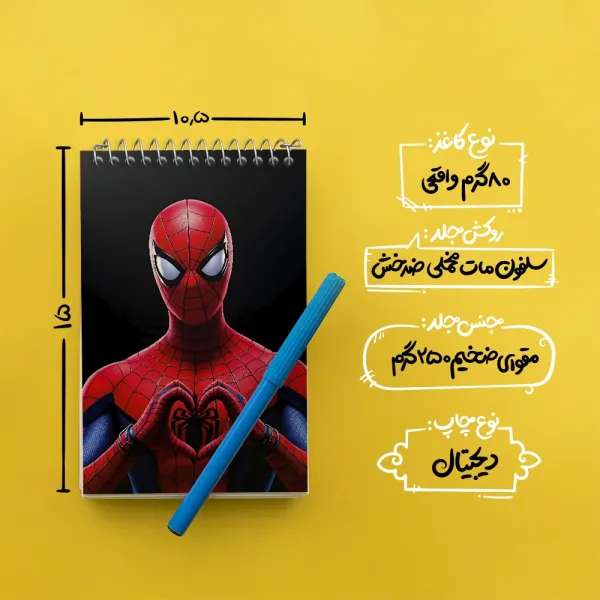 برند خندالو در زمینه تولید انواع دفاتر فانتزی و تحصیلی فعالیت میکند که به دلیل جذابیت ظاهری و طرح های متنوع طرفداران زیادی دارد. دفتر یادداشت خندالو طرح اسپایدرمن محصولی مناسب برای همه عاشقان لوازم التحریر است و همچنین همه کسانی که بنا به موقعیت تحصیل یا شغلشان با دفتر و نوشت افزار زیاد سر و کار دارند. در تولید دفتر یادداشت خندالو طرح اسپایدرمن از نوع صحافی فنر مارپیچ استفاده شده که در این نوع صحافی برگهها به راحتی چرخیده و یا بیرون آورده می شوند. دفتر های خندالو دارای جلد انعطاف پذیر از جنس مقوای گلاسه 250 گرم با روکش سلفون مات مخملی است که به شما امکان میدهد از دفتر خود بدون اینکه نگرانی از شکستن یا خراب شدن جلد را داشته باشید استفاده کنید و همچنین در این دفاتر از کاغذ 80 گرم با کیفیت استفاده شده که باعث میشود هنگام نوشتن به خوبی جوهر قلم بر روی صفحه نشسته و از خط خوردگیها جلوگیری کند. دفتر یادداشت خندالو با جنس و دوام مناسب، برگه های کاملاً سفید و خطوط طوسی دقیق را داراست که انسان را به نوشتن منظم و زیبا ترغیب میکند. طراحی کاملاً مناسب این دفاتر، به همراه کیفیت بالا، از آن یک محصول مورد علاقه و قابل اعتماد برای همه مقاطع تحصیلی میسازد. دفتر یادداشت خندالو طرح اسپایدرمن انتخابی هوشمندانه و مناسب برای افرادی است که به دنبال دفتری با کیفیت و کاربرد عالی هستند. این دفتر، همراه خوبی برای شما در تمام مراحل تحصیل و کار خواهد بود و تجربهای لذتبخش از نوشتن و آموختن را به شما هدیه میدهد.