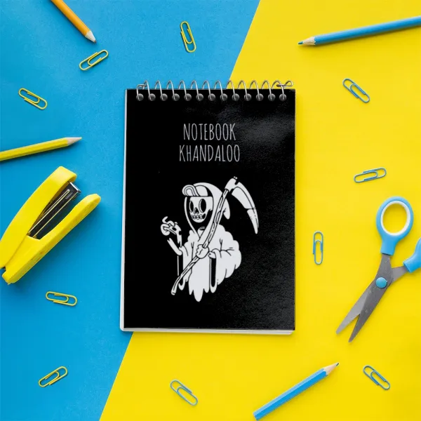 برند خندالو در زمینه تولید انواع دفاتر فانتزی و تحصیلی فعالیت میکند که به دلیل جذابیت ظاهری و طرح های متنوع طرفداران زیادی دارد. دفتر یادداشت خندالو طرح اسکلت (skeleton) محصولی مناسب برای همه عاشقان لوازم التحریر است و همچنین همه کسانی که بنا به موقعیت تحصیل یا شغلشان با دفتر و نوشت افزار زیاد سر و کار دارند. در تولید دفتر یادداشت خندالو طرح اسکلت (skeleton) از نوع صحافی فنر مارپیچ استفاده شده که در این نوع صحافی برگه‌ها به راحتی چرخیده و یا بیرون آورده می شوند.