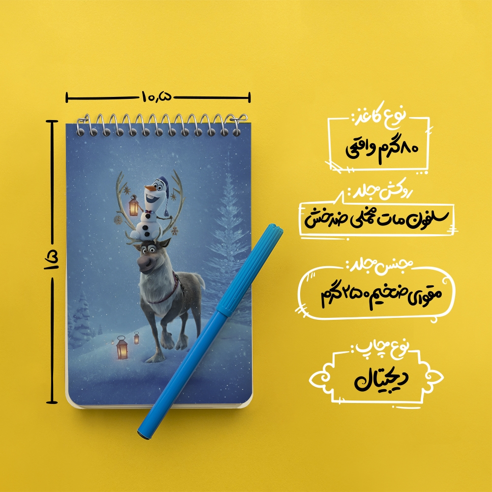 برند خندالو در زمینه تولید انواع دفاتر فانتزی و تحصیلی فعالیت میکند که به دلیل جذابیت ظاهری و طرح های متنوع طرفداران زیادی دارد. دفتر یادداشت خندالو طرح السا و آنا و فروزن محصولی مناسب برای همه عاشقان لوازم التحریر است و همچنین همه کسانی که بنا به موقعیت تحصیل یا شغلشان با دفتر و نوشت افزار زیاد سر و کار دارند. در تولید دفتر یادداشت خندالو طرح السا و آنا و فروزن از نوع صحافی فنر مارپیچ استفاده شده که در این نوع صحافی برگهها به راحتی چرخیده و یا بیرون آورده می شوند. دفتر های خندالو دارای جلد انعطاف پذیر از جنس مقوای گلاسه 250 گرم با روکش سلفون مات مخملی است که به شما امکان میدهد از دفتر خود بدون اینکه نگرانی از شکستن یا خراب شدن جلد را داشته باشید استفاده کنید و همچنین در این دفاتر از کاغذ 80 گرم با کیفیت استفاده شده که باعث میشود هنگام نوشتن به خوبی جوهر قلم بر روی صفحه نشسته و از خط خوردگیها جلوگیری کند. دفتر یادداشت خندالو با جنس و دوام مناسب، برگه های کاملاً سفید و خطوط طوسی دقیق را داراست که انسان را به نوشتن منظم و زیبا ترغیب میکند. طراحی کاملاً مناسب این دفاتر، به همراه کیفیت بالا، از آن یک محصول مورد علاقه و قابل اعتماد برای همه مقاطع تحصیلی میسازد. دفتر یادداشت خندالو طرح السا و آنا و فروزن انتخابی هوشمندانه و مناسب برای افرادی است که به دنبال دفتری با کیفیت و کاربرد عالی هستند. این دفتر، همراه خوبی برای شما در تمام مراحل تحصیل و کار خواهد بود و تجربهای لذتبخش از نوشتن و آموختن را به شما هدیه میدهد.