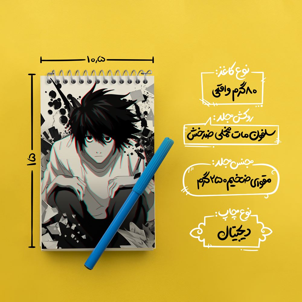 برند خندالو در زمینه تولید انواع دفاتر فانتزی و تحصیلی فعالیت میکند که به دلیل جذابیت ظاهری و طرح های متنوع طرفداران زیادی دارد. دفتر یادداشت خندالو طرح ال لاولیت انیمه دفترچه مرگ Death Note محصولی مناسب برای همه عاشقان لوازم التحریر است و همچنین همه کسانی که بنا به موقعیت تحصیل یا شغلشان با دفتر و نوشت افزار زیاد سر و کار دارند. در تولید دفتر یادداشت خندالو طرح ال لاولیت انیمه دفترچه مرگ Death Note از نوع صحافی فنر مارپیچ استفاده شده که در این نوع صحافی برگهها به راحتی چرخیده و یا بیرون آورده می شوند. دفتر های خندالو دارای جلد انعطاف پذیر از جنس مقوای گلاسه 250 گرم با روکش سلفون مات مخملی است که به شما امکان میدهد از دفتر خود بدون اینکه نگرانی از شکستن یا خراب شدن جلد را داشته باشید استفاده کنید و همچنین در این دفاتر از کاغذ 80 گرم با کیفیت استفاده شده که باعث میشود هنگام نوشتن به خوبی جوهر قلم بر روی صفحه نشسته و از خط خوردگیها جلوگیری کند. دفتر یادداشت خندالو با جنس و دوام مناسب، برگه های کاملاً سفید و خطوط طوسی دقیق را داراست که انسان را به نوشتن منظم و زیبا ترغیب میکند. طراحی کاملاً مناسب این دفاتر، به همراه کیفیت بالا، از آن یک محصول مورد علاقه و قابل اعتماد برای همه مقاطع تحصیلی میسازد. دفتر یادداشت خندالو طرح ال لاولیت انیمه دفترچه مرگ Death Note انتخابی هوشمندانه و مناسب برای افرادی است که به دنبال دفتری با کیفیت و کاربرد عالی هستند. این دفتر، همراه خوبی برای شما در تمام مراحل تحصیل و کار خواهد بود و تجربهای لذتبخش از نوشتن و آموختن را به شما هدیه میدهد.