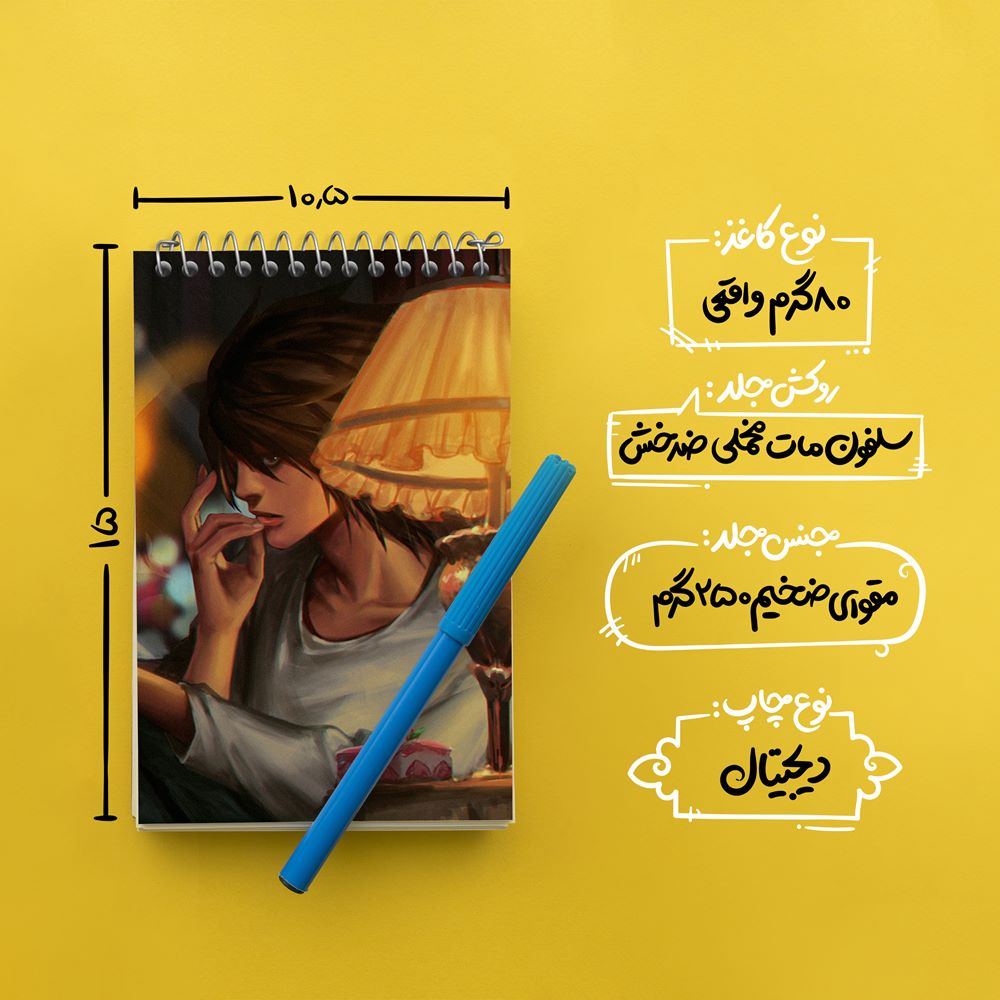 برند خندالو در زمینه تولید انواع دفاتر فانتزی و تحصیلی فعالیت میکند که به دلیل جذابیت ظاهری و طرح های متنوع طرفداران زیادی دارد. دفتر یادداشت خندالو طرح ال لاولیت انیمه دفترچه مرگ Death Note محصولی مناسب برای همه عاشقان لوازم التحریر است و همچنین همه کسانی که بنا به موقعیت تحصیل یا شغلشان با دفتر و نوشت افزار زیاد سر و کار دارند. در تولید دفتر یادداشت خندالو طرح ال لاولیت انیمه دفترچه مرگ Death Note از نوع صحافی فنر مارپیچ استفاده شده که در این نوع صحافی برگهها به راحتی چرخیده و یا بیرون آورده می شوند. دفتر های خندالو دارای جلد انعطاف پذیر از جنس مقوای گلاسه 250 گرم با روکش سلفون مات مخملی است که به شما امکان میدهد از دفتر خود بدون اینکه نگرانی از شکستن یا خراب شدن جلد را داشته باشید استفاده کنید و همچنین در این دفاتر از کاغذ 80 گرم با کیفیت استفاده شده که باعث میشود هنگام نوشتن به خوبی جوهر قلم بر روی صفحه نشسته و از خط خوردگیها جلوگیری کند. دفتر یادداشت خندالو با جنس و دوام مناسب، برگه های کاملاً سفید و خطوط طوسی دقیق را داراست که انسان را به نوشتن منظم و زیبا ترغیب میکند. طراحی کاملاً مناسب این دفاتر، به همراه کیفیت بالا، از آن یک محصول مورد علاقه و قابل اعتماد برای همه مقاطع تحصیلی میسازد. دفتر یادداشت خندالو طرح ال لاولیت انیمه دفترچه مرگ Death Note انتخابی هوشمندانه و مناسب برای افرادی است که به دنبال دفتری با کیفیت و کاربرد عالی هستند. این دفتر، همراه خوبی برای شما در تمام مراحل تحصیل و کار خواهد بود و تجربهای لذتبخش از نوشتن و آموختن را به شما هدیه میدهد.