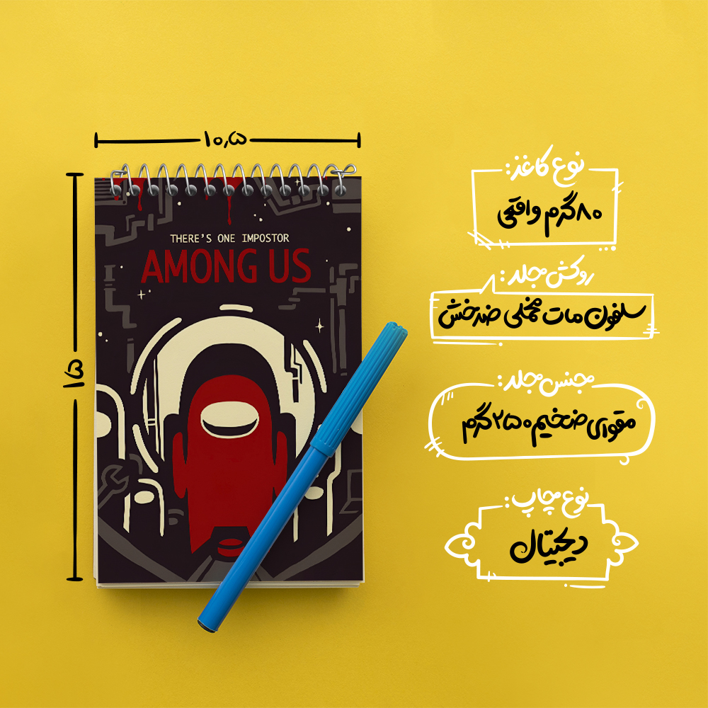 برند خندالو در زمینه تولید انواع دفاتر فانتزی و تحصیلی فعالیت میکند که به دلیل جذابیت ظاهری و طرح های متنوع طرفداران زیادی دارد. دفتر یادداشت خندالو طرح امانگ آس (Among Us) محصولی مناسب برای همه عاشقان لوازم التحریر است و همچنین همه کسانی که بنا به موقعیت تحصیل یا شغلشان با دفتر و نوشت افزار زیاد سر و کار دارند. در تولید دفتر یادداشت خندالو طرح امانگ آس (Among Us) از نوع صحافی فنر مارپیچ استفاده شده که در این نوع صحافی برگه‌ها به راحتی چرخیده و یا بیرون آورده می شوند.