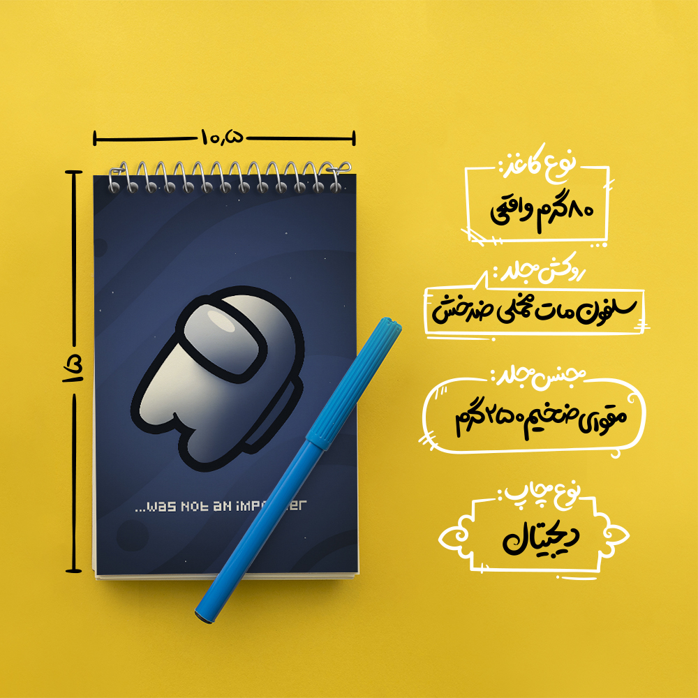 برند خندالو در زمینه تولید انواع دفاتر فانتزی و تحصیلی فعالیت میکند که به دلیل جذابیت ظاهری و طرح های متنوع طرفداران زیادی دارد. دفتر یادداشت خندالو طرح امانگ آس (Among Us) محصولی مناسب برای همه عاشقان لوازم التحریر است و همچنین همه کسانی که بنا به موقعیت تحصیل یا شغلشان با دفتر و نوشت افزار زیاد سر و کار دارند. در تولید دفتر یادداشت خندالو طرح امانگ آس (Among Us) از نوع صحافی فنر مارپیچ استفاده شده که در این نوع صحافی برگه‌ها به راحتی چرخیده و یا بیرون آورده می شوند.