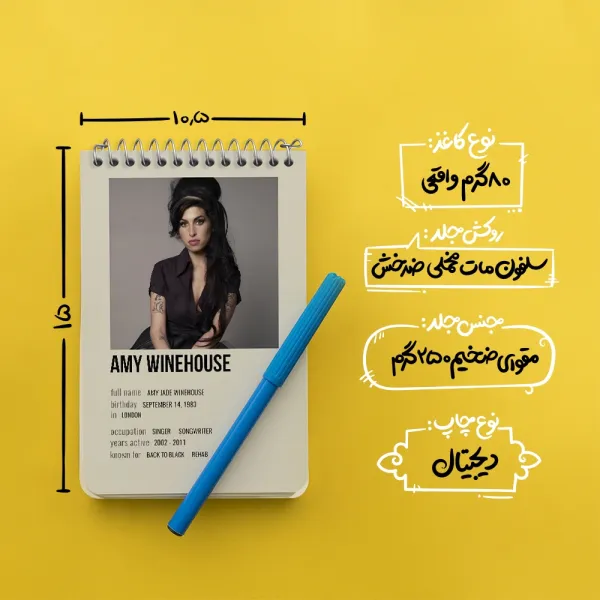 برند خندالو در زمینه تولید انواع دفاتر فانتزی و تحصیلی فعالیت میکند که به دلیل جذابیت ظاهری و طرح های متنوع طرفداران زیادی دارد. دفتر یادداشت خندالو طرح امی واینهاوس (Amy Winehouse) محصولی مناسب برای همه عاشقان لوازم التحریر است و همچنین همه کسانی که بنا به موقعیت تحصیل یا شغلشان با دفتر و نوشت افزار زیاد سر و کار دارند. در تولید دفتر یادداشت خندالو طرح امی واینهاوس (Amy Winehouse) از نوع صحافی فنر مارپیچ استفاده شده که در این نوع صحافی برگهها به راحتی چرخیده و یا بیرون آورده می شوند. دفتر های خندالو دارای جلد انعطاف پذیر از جنس مقوای گلاسه 250 گرم با روکش سلفون مات مخملی است که به شما امکان میدهد از دفتر خود بدون اینکه نگرانی از شکستن یا خراب شدن جلد را داشته باشید استفاده کنید و همچنین در این دفاتر از کاغذ 80 گرم با کیفیت استفاده شده که باعث میشود هنگام نوشتن به خوبی جوهر قلم بر روی صفحه نشسته و از خط خوردگیها جلوگیری کند. دفتر یادداشت خندالو با جنس و دوام مناسب، برگه های کاملاً سفید و خطوط طوسی دقیق را داراست که انسان را به نوشتن منظم و زیبا ترغیب میکند. طراحی کاملاً مناسب این دفاتر، به همراه کیفیت بالا، از آن یک محصول مورد علاقه و قابل اعتماد برای همه مقاطع تحصیلی میسازد. دفتر یادداشت خندالو طرح امی واینهاوس (Amy Winehouse) انتخابی هوشمندانه و مناسب برای افرادی است که به دنبال دفتری با کیفیت و کاربرد عالی هستند. این دفتر، همراه خوبی برای شما در تمام مراحل تحصیل و کار خواهد بود و تجربهای لذتبخش از نوشتن و آموختن را به شما هدیه میدهد.