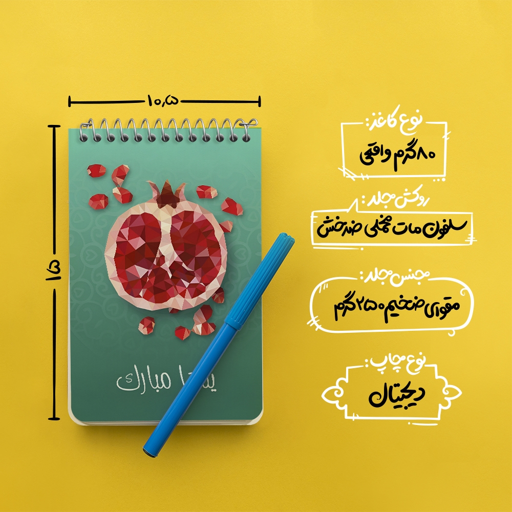 برند خندالو در زمینه تولید انواع دفاتر فانتزی و تحصیلی فعالیت میکند که به دلیل جذابیت ظاهری و طرح های متنوع طرفداران زیادی دارد. دفتر یادداشت خندالو طرح انار شب یلدا محصولی مناسب برای همه عاشقان لوازم التحریر است و همچنین همه کسانی که بنا به موقعیت تحصیل یا شغلشان با دفتر و نوشت افزار زیاد سر و کار دارند. در تولید دفتر یادداشت خندالو طرح انار شب یلدا از نوع صحافی فنر مارپیچ استفاده شده که در این نوع صحافی برگهها به راحتی چرخیده و یا بیرون آورده می شوند. دفتر های خندالو دارای جلد انعطاف پذیر از جنس مقوای گلاسه 250 گرم با روکش سلفون مات مخملی است که به شما امکان میدهد از دفتر خود بدون اینکه نگرانی از شکستن یا خراب شدن جلد را داشته باشید استفاده کنید و همچنین در این دفاتر از کاغذ 80 گرم با کیفیت استفاده شده که باعث میشود هنگام نوشتن به خوبی جوهر قلم بر روی صفحه نشسته و از خط خوردگیها جلوگیری کند. دفتر یادداشت خندالو با جنس و دوام مناسب، برگه های کاملاً سفید و خطوط طوسی دقیق را داراست که انسان را به نوشتن منظم و زیبا ترغیب میکند. طراحی کاملاً مناسب این دفاتر، به همراه کیفیت بالا، از آن یک محصول مورد علاقه و قابل اعتماد برای همه مقاطع تحصیلی میسازد. دفتر یادداشت خندالو طرح انار شب یلدا انتخابی هوشمندانه و مناسب برای افرادی است که به دنبال دفتری با کیفیت و کاربرد عالی هستند. این دفتر، همراه خوبی برای شما در تمام مراحل تحصیل و کار خواهد بود و تجربهای لذتبخش از نوشتن و آموختن را به شما هدیه میدهد.