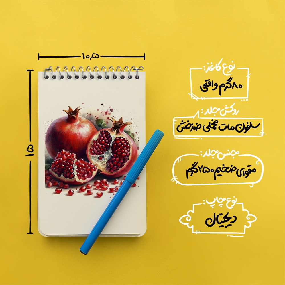 برند خندالو در زمینه تولید انواع دفاتر فانتزی و تحصیلی فعالیت میکند که به دلیل جذابیت ظاهری و طرح های متنوع طرفداران زیادی دارد. دفتر یادداشت خندالو طرح انار و یلدا محصولی مناسب برای همه عاشقان لوازم التحریر است و همچنین همه کسانی که بنا به موقعیت تحصیل یا شغلشان با دفتر و نوشت افزار زیاد سر و کار دارند. در تولید دفتر یادداشت خندالو طرح انار و یلدا از نوع صحافی فنر مارپیچ استفاده شده که در این نوع صحافی برگهها به راحتی چرخیده و یا بیرون آورده می شوند. دفتر های خندالو دارای جلد انعطاف پذیر از جنس مقوای گلاسه 250 گرم با روکش سلفون مات مخملی است که به شما امکان میدهد از دفتر خود بدون اینکه نگرانی از شکستن یا خراب شدن جلد را داشته باشید استفاده کنید و همچنین در این دفاتر از کاغذ 80 گرم با کیفیت استفاده شده که باعث میشود هنگام نوشتن به خوبی جوهر قلم بر روی صفحه نشسته و از خط خوردگیها جلوگیری کند. دفتر یادداشت خندالو با جنس و دوام مناسب، برگه های کاملاً سفید و خطوط طوسی دقیق را داراست که انسان را به نوشتن منظم و زیبا ترغیب میکند. طراحی کاملاً مناسب این دفاتر، به همراه کیفیت بالا، از آن یک محصول مورد علاقه و قابل اعتماد برای همه مقاطع تحصیلی میسازد. دفتر یادداشت خندالو طرح انار و یلدا انتخابی هوشمندانه و مناسب برای افرادی است که به دنبال دفتری با کیفیت و کاربرد عالی هستند. این دفتر، همراه خوبی برای شما در تمام مراحل تحصیل و کار خواهد بود و تجربهای لذتبخش از نوشتن و آموختن را به شما هدیه میدهد.