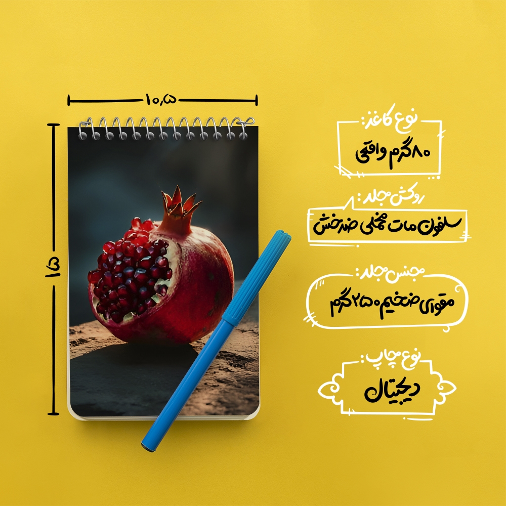 برند خندالو در زمینه تولید انواع دفاتر فانتزی و تحصیلی فعالیت میکند که به دلیل جذابیت ظاهری و طرح های متنوع طرفداران زیادی دارد. دفتر یادداشت خندالو طرح انار یلدا محصولی مناسب برای همه عاشقان لوازم التحریر است و همچنین همه کسانی که بنا به موقعیت تحصیل یا شغلشان با دفتر و نوشت افزار زیاد سر و کار دارند. در تولید دفتر یادداشت خندالو طرح انار یلدا از نوع صحافی فنر مارپیچ استفاده شده که در این نوع صحافی برگهها به راحتی چرخیده و یا بیرون آورده می شوند. دفتر های خندالو دارای جلد انعطاف پذیر از جنس مقوای گلاسه 250 گرم با روکش سلفون مات مخملی است که به شما امکان میدهد از دفتر خود بدون اینکه نگرانی از شکستن یا خراب شدن جلد را داشته باشید استفاده کنید و همچنین در این دفاتر از کاغذ 80 گرم با کیفیت استفاده شده که باعث میشود هنگام نوشتن به خوبی جوهر قلم بر روی صفحه نشسته و از خط خوردگیها جلوگیری کند. دفتر یادداشت خندالو با جنس و دوام مناسب، برگه های کاملاً سفید و خطوط طوسی دقیق را داراست که انسان را به نوشتن منظم و زیبا ترغیب میکند. طراحی کاملاً مناسب این دفاتر، به همراه کیفیت بالا، از آن یک محصول مورد علاقه و قابل اعتماد برای همه مقاطع تحصیلی میسازد. دفتر یادداشت خندالو طرح انار یلدا انتخابی هوشمندانه و مناسب برای افرادی است که به دنبال دفتری با کیفیت و کاربرد عالی هستند. این دفتر، همراه خوبی برای شما در تمام مراحل تحصیل و کار خواهد بود و تجربهای لذتبخش از نوشتن و آموختن را به شما هدیه میدهد.