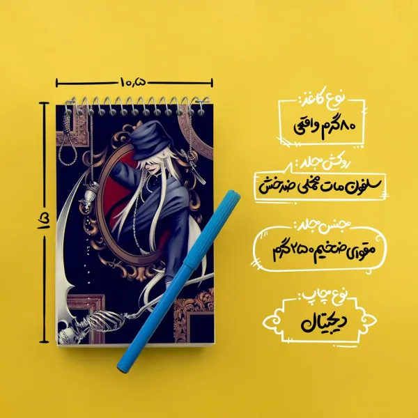 برند خندالو در زمینه تولید انواع دفاتر فانتزی و تحصیلی فعالیت میکند که به دلیل جذابیت ظاهری و طرح های متنوع طرفداران زیادی دارد. دفتر یادداشت خندالو طرح اندرتیکر انیمه خادم سیاه Black Butler محصولی مناسب برای همه عاشقان لوازم التحریر است و همچنین همه کسانی که بنا به موقعیت تحصیل یا شغلشان با دفتر و نوشت افزار زیاد سر و کار دارند. در تولید دفتر یادداشت خندالو طرح اندرتیکر انیمه خادم سیاه Black Butler از نوع صحافی فنر مارپیچ استفاده شده که در این نوع صحافی برگهها به راحتی چرخیده و یا بیرون آورده می شوند. دفتر های خندالو دارای جلد انعطاف پذیر از جنس مقوای گلاسه 250 گرم با روکش سلفون مات مخملی است که به شما امکان میدهد از دفتر خود بدون اینکه نگرانی از شکستن یا خراب شدن جلد را داشته باشید استفاده کنید و همچنین در این دفاتر از کاغذ 80 گرم با کیفیت استفاده شده که باعث میشود هنگام نوشتن به خوبی جوهر قلم بر روی صفحه نشسته و از خط خوردگیها جلوگیری کند. دفتر یادداشت خندالو با جنس و دوام مناسب، برگه های کاملاً سفید و خطوط طوسی دقیق را داراست که انسان را به نوشتن منظم و زیبا ترغیب میکند. طراحی کاملاً مناسب این دفاتر، به همراه کیفیت بالا، از آن یک محصول مورد علاقه و قابل اعتماد برای همه مقاطع تحصیلی میسازد. دفتر یادداشت خندالو طرح اندرتیکر انیمه خادم سیاه Black Butler انتخابی هوشمندانه و مناسب برای افرادی است که به دنبال دفتری با کیفیت و کاربرد عالی هستند. این دفتر، همراه خوبی برای شما در تمام مراحل تحصیل و کار خواهد بود و تجربهای لذتبخش از نوشتن و آموختن را به شما هدیه میدهد.