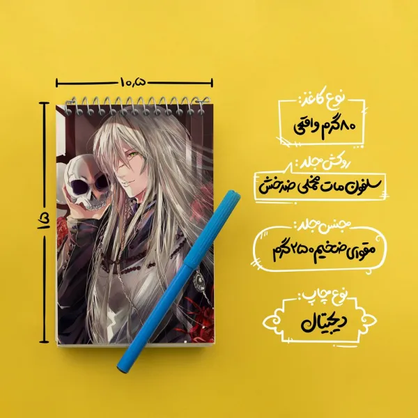 برند خندالو در زمینه تولید انواع دفاتر فانتزی و تحصیلی فعالیت میکند که به دلیل جذابیت ظاهری و طرح های متنوع طرفداران زیادی دارد. دفتر یادداشت خندالو طرح اندرتیکر انیمه خادم سیاه Black Butler محصولی مناسب برای همه عاشقان لوازم التحریر است و همچنین همه کسانی که بنا به موقعیت تحصیل یا شغلشان با دفتر و نوشت افزار زیاد سر و کار دارند. در تولید دفتر یادداشت خندالو طرح اندرتیکر انیمه خادم سیاه Black Butler از نوع صحافی فنر مارپیچ استفاده شده که در این نوع صحافی برگهها به راحتی چرخیده و یا بیرون آورده می شوند. دفتر های خندالو دارای جلد انعطاف پذیر از جنس مقوای گلاسه 250 گرم با روکش سلفون مات مخملی است که به شما امکان میدهد از دفتر خود بدون اینکه نگرانی از شکستن یا خراب شدن جلد را داشته باشید استفاده کنید و همچنین در این دفاتر از کاغذ 80 گرم با کیفیت استفاده شده که باعث میشود هنگام نوشتن به خوبی جوهر قلم بر روی صفحه نشسته و از خط خوردگیها جلوگیری کند. دفتر یادداشت خندالو با جنس و دوام مناسب، برگه های کاملاً سفید و خطوط طوسی دقیق را داراست که انسان را به نوشتن منظم و زیبا ترغیب میکند. طراحی کاملاً مناسب این دفاتر، به همراه کیفیت بالا، از آن یک محصول مورد علاقه و قابل اعتماد برای همه مقاطع تحصیلی میسازد. دفتر یادداشت خندالو طرح اندرتیکر انیمه خادم سیاه Black Butler انتخابی هوشمندانه و مناسب برای افرادی است که به دنبال دفتری با کیفیت و کاربرد عالی هستند. این دفتر، همراه خوبی برای شما در تمام مراحل تحصیل و کار خواهد بود و تجربهای لذتبخش از نوشتن و آموختن را به شما هدیه میدهد.