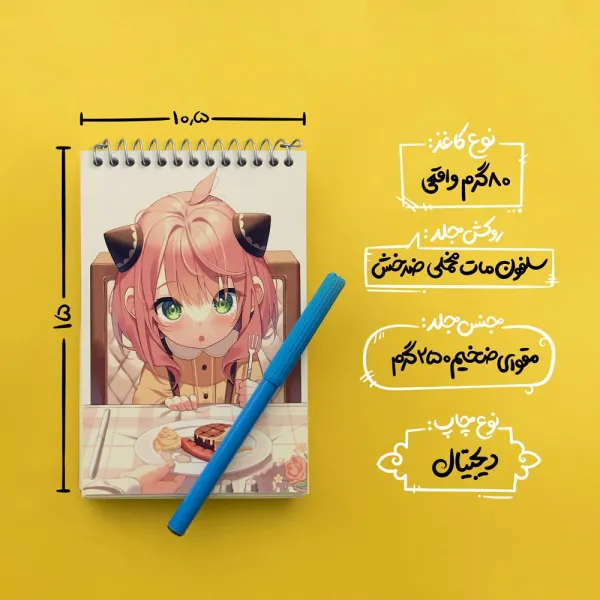 برند خندالو در زمینه تولید انواع دفاتر فانتزی و تحصیلی فعالیت میکند که به دلیل جذابیت ظاهری و طرح های متنوع طرفداران زیادی دارد. دفتر یادداشت خندالو طرح انیا انیمه اسپای ایکس فمیلی Spy X Family محصولی مناسب برای همه عاشقان لوازم التحریر است و همچنین همه کسانی که بنا به موقعیت تحصیل یا شغلشان با دفتر و نوشت افزار زیاد سر و کار دارند. در تولید دفتر یادداشت خندالو طرح انیا انیمه اسپای ایکس فمیلی Spy X Family از نوع صحافی فنر مارپیچ استفاده شده که در این نوع صحافی برگهها به راحتی چرخیده و یا بیرون آورده می شوند. دفتر های خندالو دارای جلد انعطاف پذیر از جنس مقوای گلاسه 250 گرم با روکش سلفون مات مخملی است که به شما امکان میدهد از دفتر خود بدون اینکه نگرانی از شکستن یا خراب شدن جلد را داشته باشید استفاده کنید و همچنین در این دفاتر از کاغذ 80 گرم با کیفیت استفاده شده که باعث میشود هنگام نوشتن به خوبی جوهر قلم بر روی صفحه نشسته و از خط خوردگیها جلوگیری کند. دفتر یادداشت خندالو با جنس و دوام مناسب، برگه های کاملاً سفید و خطوط طوسی دقیق را داراست که انسان را به نوشتن منظم و زیبا ترغیب میکند. طراحی کاملاً مناسب این دفاتر، به همراه کیفیت بالا، از آن یک محصول مورد علاقه و قابل اعتماد برای همه مقاطع تحصیلی میسازد. دفتر یادداشت خندالو طرح انیا انیمه اسپای ایکس فمیلی Spy X Family انتخابی هوشمندانه و مناسب برای افرادی است که به دنبال دفتری با کیفیت و کاربرد عالی هستند. این دفتر، همراه خوبی برای شما در تمام مراحل تحصیل و کار خواهد بود و تجربهای لذتبخش از نوشتن و آموختن را به شما هدیه میدهد.