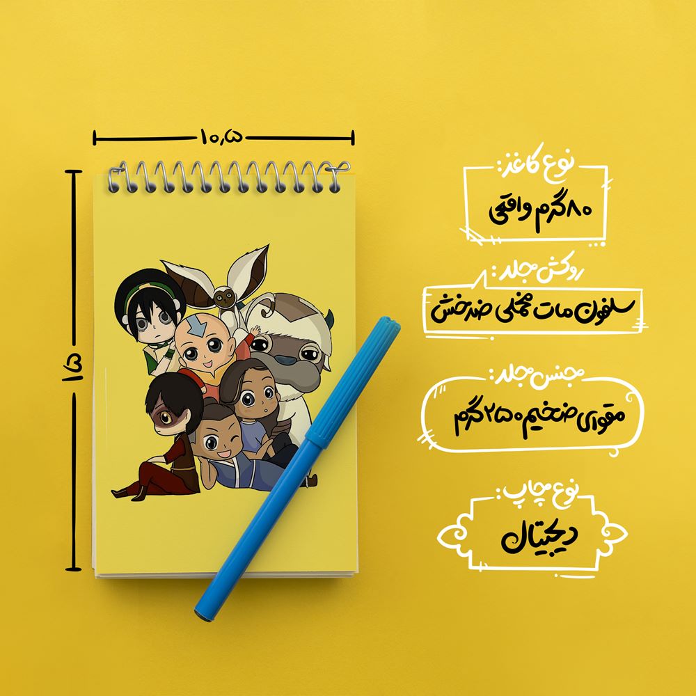 برند خندالو در زمینه تولید انواع دفاتر فانتزی و تحصیلی فعالیت میکند که به دلیل جذابیت ظاهری و طرح های متنوع طرفداران زیادی دارد. دفتر یادداشت خندالو طرح انیمه آواتار Avatar محصولی مناسب برای همه عاشقان لوازم التحریر است و همچنین همه کسانی که بنا به موقعیت تحصیل یا شغلشان با دفتر و نوشت افزار زیاد سر و کار دارند. در تولید دفتر یادداشت خندالو طرح انیمه آواتار Avatar از نوع صحافی فنر مارپیچ استفاده شده که در این نوع صحافی برگه‌ها به راحتی چرخیده و یا بیرون آورده می شوند.
