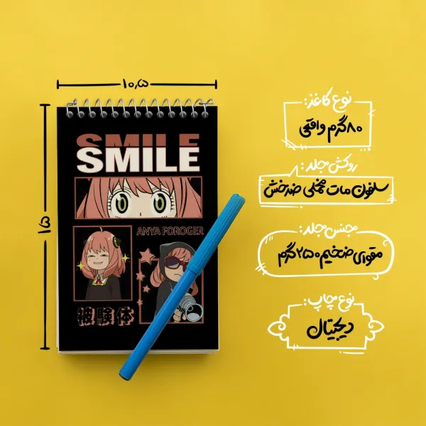برند خندالو در زمینه تولید انواع دفاتر فانتزی و تحصیلی فعالیت میکند که به دلیل جذابیت ظاهری و طرح های متنوع طرفداران زیادی دارد. دفتر یادداشت خندالو طرح انیمه اسپای ایکس فمیلی (Spy × Family) محصولی مناسب برای همه عاشقان لوازم التحریر است و همچنین همه کسانی که بنا به موقعیت تحصیل یا شغلشان با دفتر و نوشت افزار زیاد سر و کار دارند. در تولید دفتر یادداشت خندالو طرح انیمه اسپای ایکس فمیلی (Spy × Family) از نوع صحافی فنر مارپیچ استفاده شده که در این نوع صحافی برگهها به راحتی چرخیده و یا بیرون آورده می شوند. دفتر های خندالو دارای جلد انعطاف پذیر از جنس مقوای گلاسه 250 گرم با روکش سلفون مات مخملی است که به شما امکان میدهد از دفتر خود بدون اینکه نگرانی از شکستن یا خراب شدن جلد را داشته باشید استفاده کنید و همچنین در این دفاتر از کاغذ 80 گرم با کیفیت استفاده شده که باعث میشود هنگام نوشتن به خوبی جوهر قلم بر روی صفحه نشسته و از خط خوردگیها جلوگیری کند. دفتر یادداشت خندالو با جنس و دوام مناسب، برگه های کاملاً سفید و خطوط طوسی دقیق را داراست که انسان را به نوشتن منظم و زیبا ترغیب میکند. طراحی کاملاً مناسب این دفاتر، به همراه کیفیت بالا، از آن یک محصول مورد علاقه و قابل اعتماد برای همه مقاطع تحصیلی میسازد. دفتر یادداشت خندالو طرح انیمه اسپای ایکس فمیلی (Spy × Family) انتخابی هوشمندانه و مناسب برای افرادی است که به دنبال دفتری با کیفیت و کاربرد عالی هستند. این دفتر، همراه خوبی برای شما در تمام مراحل تحصیل و کار خواهد بود و تجربهای لذتبخش از نوشتن و آموختن را به شما هدیه میدهد.