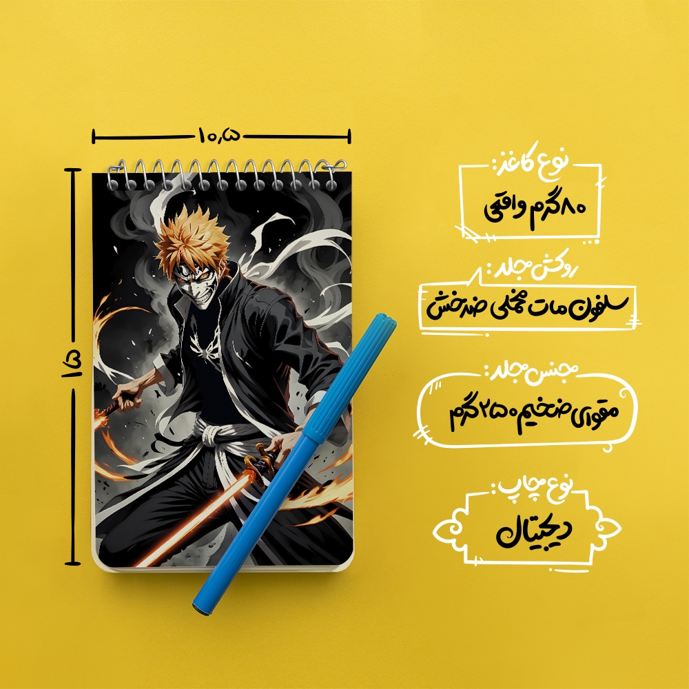 برند خندالو در زمینه تولید انواع دفاتر فانتزی و تحصیلی فعالیت میکند که به دلیل جذابیت ظاهری و طرح های متنوع طرفداران زیادی دارد. دفتر یادداشت خندالو طرح انیمه بلیچ محصولی مناسب برای همه عاشقان لوازم التحریر است و همچنین همه کسانی که بنا به موقعیت تحصیل یا شغلشان با دفتر و نوشت افزار زیاد سر و کار دارند. در تولید دفتر یادداشت خندالو طرح انیمه بلیچ از نوع صحافی فنر مارپیچ استفاده شده که در این نوع صحافی برگهها به راحتی چرخیده و یا بیرون آورده می شوند. دفتر های خندالو دارای جلد انعطاف پذیر از جنس مقوای گلاسه 250 گرم با روکش سلفون مات مخملی است که به شما امکان میدهد از دفتر خود بدون اینکه نگرانی از شکستن یا خراب شدن جلد را داشته باشید استفاده کنید و همچنین در این دفاتر از کاغذ 80 گرم با کیفیت استفاده شده که باعث میشود هنگام نوشتن به خوبی جوهر قلم بر روی صفحه نشسته و از خط خوردگیها جلوگیری کند. دفتر یادداشت خندالو با جنس و دوام مناسب، برگه های کاملاً سفید و خطوط طوسی دقیق را داراست که انسان را به نوشتن منظم و زیبا ترغیب میکند. طراحی کاملاً مناسب این دفاتر، به همراه کیفیت بالا، از آن یک محصول مورد علاقه و قابل اعتماد برای همه مقاطع تحصیلی میسازد. دفتر یادداشت خندالو طرح انیمه بلیچ انتخابی هوشمندانه و مناسب برای افرادی است که به دنبال دفتری با کیفیت و کاربرد عالی هستند. این دفتر، همراه خوبی برای شما در تمام مراحل تحصیل و کار خواهد بود و تجربهای لذتبخش از نوشتن و آموختن را به شما هدیه میدهد.