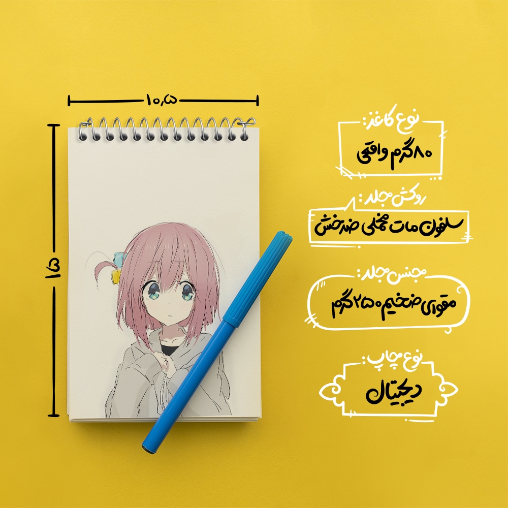 برند خندالو در زمینه تولید انواع دفاتر فانتزی و تحصیلی فعالیت میکند که به دلیل جذابیت ظاهری و طرح های متنوع طرفداران زیادی دارد. دفتر یادداشت خندالو طرح انیمه بوچی راک محصولی مناسب برای همه عاشقان لوازم التحریر است و همچنین همه کسانی که بنا به موقعیت تحصیل یا شغلشان با دفتر و نوشت افزار زیاد سر و کار دارند. در تولید دفتر یادداشت خندالو طرح انیمه بوچی راک از نوع صحافی فنر مارپیچ استفاده شده که در این نوع صحافی برگهها به راحتی چرخیده و یا بیرون آورده می شوند. دفتر های خندالو دارای جلد انعطاف پذیر از جنس مقوای گلاسه 250 گرم با روکش سلفون مات مخملی است که به شما امکان میدهد از دفتر خود بدون اینکه نگرانی از شکستن یا خراب شدن جلد را داشته باشید استفاده کنید و همچنین در این دفاتر از کاغذ 80 گرم با کیفیت استفاده شده که باعث میشود هنگام نوشتن به خوبی جوهر قلم بر روی صفحه نشسته و از خط خوردگیها جلوگیری کند. دفتر یادداشت خندالو با جنس و دوام مناسب، برگه های کاملاً سفید و خطوط طوسی دقیق را داراست که انسان را به نوشتن منظم و زیبا ترغیب میکند. طراحی کاملاً مناسب این دفاتر، به همراه کیفیت بالا، از آن یک محصول مورد علاقه و قابل اعتماد برای همه مقاطع تحصیلی میسازد. دفتر یادداشت خندالو طرح انیمه بوچی راک انتخابی هوشمندانه و مناسب برای افرادی است که به دنبال دفتری با کیفیت و کاربرد عالی هستند. این دفتر، همراه خوبی برای شما در تمام مراحل تحصیل و کار خواهد بود و تجربهای لذتبخش از نوشتن و آموختن را به شما هدیه میدهد.