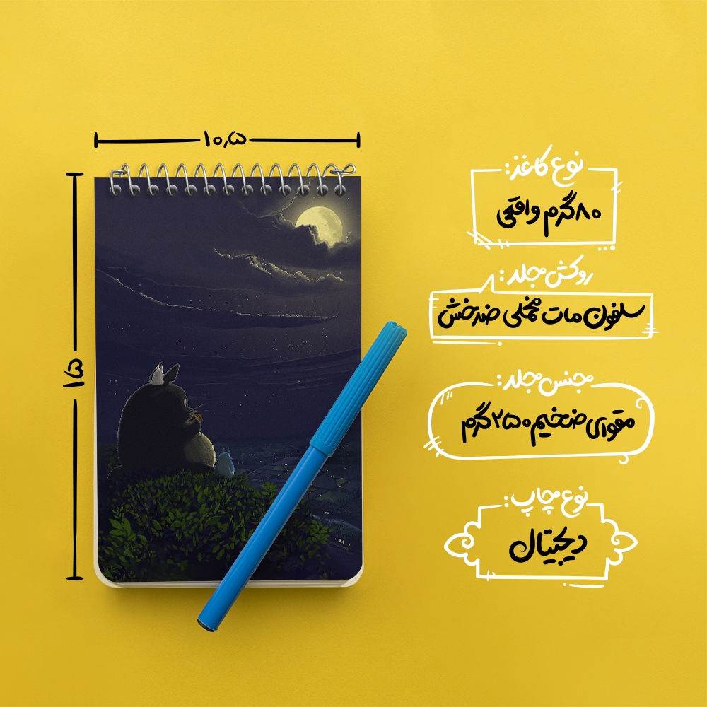 برند خندالو در زمینه تولید انواع دفاتر فانتزی و تحصیلی فعالیت میکند که به دلیل جذابیت ظاهری و طرح های متنوع طرفداران زیادی دارد. دفتر یادداشت خندالو طرح انیمه توتورو (Totoro) محصولی مناسب برای همه عاشقان لوازم التحریر است و همچنین همه کسانی که بنا به موقعیت تحصیل یا شغلشان با دفتر و نوشت افزار زیاد سر و کار دارند. در تولید دفتر یادداشت خندالو طرح انیمه توتورو (Totoro) از نوع صحافی فنر مارپیچ استفاده شده که در این نوع صحافی برگه‌ها به راحتی چرخیده و یا بیرون آورده می شوند.