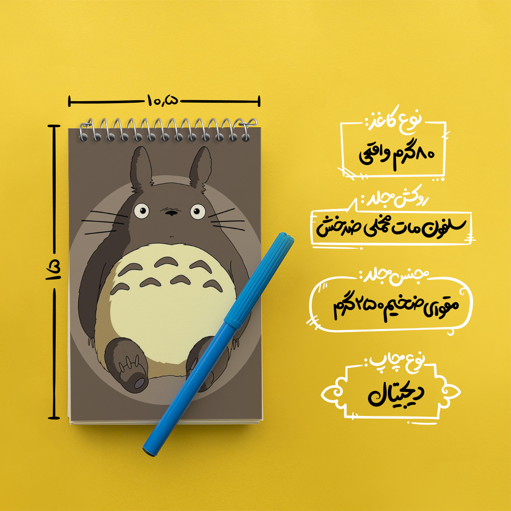 برند خندالو در زمینه تولید انواع دفاتر فانتزی و تحصیلی فعالیت میکند که به دلیل جذابیت ظاهری و طرح های متنوع طرفداران زیادی دارد. دفتر یادداشت خندالو طرح انیمه توتورو (Totoro) محصولی مناسب برای همه عاشقان لوازم التحریر است و همچنین همه کسانی که بنا به موقعیت تحصیل یا شغلشان با دفتر و نوشت افزار زیاد سر و کار دارند. در تولید دفتر یادداشت خندالو طرح انیمه توتورو (Totoro) از نوع صحافی فنر مارپیچ استفاده شده که در این نوع صحافی برگه‌ها به راحتی چرخیده و یا بیرون آورده می شوند.