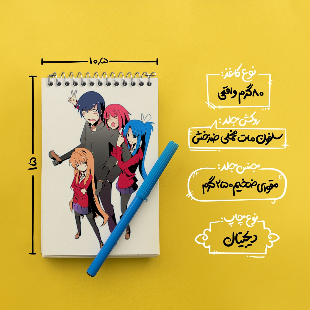 برند خندالو در زمینه تولید انواع دفاتر فانتزی و تحصیلی فعالیت میکند که به دلیل جذابیت ظاهری و طرح های متنوع طرفداران زیادی دارد. دفتر یادداشت خندالو طرح انیمه تورادورا محصولی مناسب برای همه عاشقان لوازم التحریر است و همچنین همه کسانی که بنا به موقعیت تحصیل یا شغلشان با دفتر و نوشت افزار زیاد سر و کار دارند. در تولید دفتر یادداشت خندالو طرح انیمه تورادورا از نوع صحافی فنر مارپیچ استفاده شده که در این نوع صحافی برگهها به راحتی چرخیده و یا بیرون آورده می شوند. دفتر های خندالو دارای جلد انعطاف پذیر از جنس مقوای گلاسه 250 گرم با روکش سلفون مات مخملی است که به شما امکان میدهد از دفتر خود بدون اینکه نگرانی از شکستن یا خراب شدن جلد را داشته باشید استفاده کنید و همچنین در این دفاتر از کاغذ 80 گرم با کیفیت استفاده شده که باعث میشود هنگام نوشتن به خوبی جوهر قلم بر روی صفحه نشسته و از خط خوردگیها جلوگیری کند. دفتر یادداشت خندالو با جنس و دوام مناسب، برگه های کاملاً سفید و خطوط طوسی دقیق را داراست که انسان را به نوشتن منظم و زیبا ترغیب میکند. طراحی کاملاً مناسب این دفاتر، به همراه کیفیت بالا، از آن یک محصول مورد علاقه و قابل اعتماد برای همه مقاطع تحصیلی میسازد. دفتر یادداشت خندالو طرح انیمه تورادورا انتخابی هوشمندانه و مناسب برای افرادی است که به دنبال دفتری با کیفیت و کاربرد عالی هستند. این دفتر، همراه خوبی برای شما در تمام مراحل تحصیل و کار خواهد بود و تجربهای لذتبخش از نوشتن و آموختن را به شما هدیه میدهد.