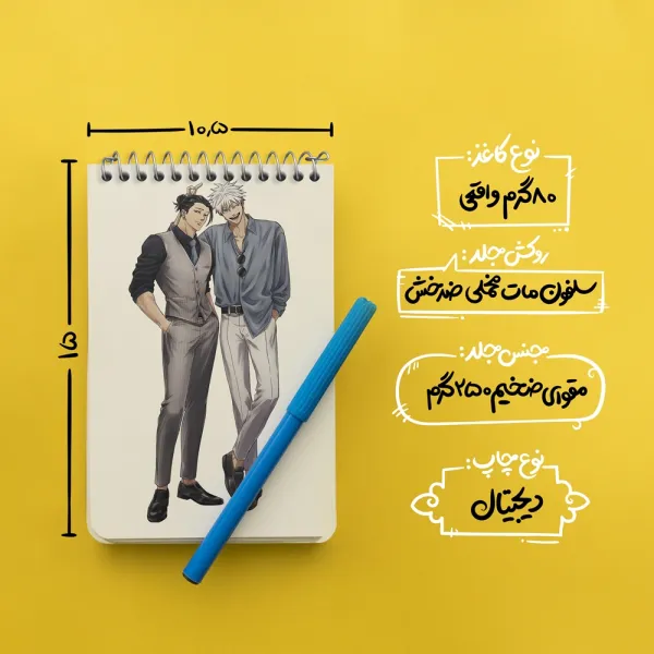 برند خندالو در زمینه تولید انواع دفاتر فانتزی و تحصیلی فعالیت میکند که به دلیل جذابیت ظاهری و طرح های متنوع طرفداران زیادی دارد. دفتر یادداشت خندالو طرح انیمه جوجوتسو کایسن محصولی مناسب برای همه عاشقان لوازم التحریر است و همچنین همه کسانی که بنا به موقعیت تحصیل یا شغلشان با دفتر و نوشت افزار زیاد سر و کار دارند. در تولید دفتر یادداشت خندالو طرح انیمه جوجوتسو کایسن از نوع صحافی فنر مارپیچ استفاده شده که در این نوع صحافی برگه‌ها به راحتی چرخیده و یا بیرون آورده می شوند.