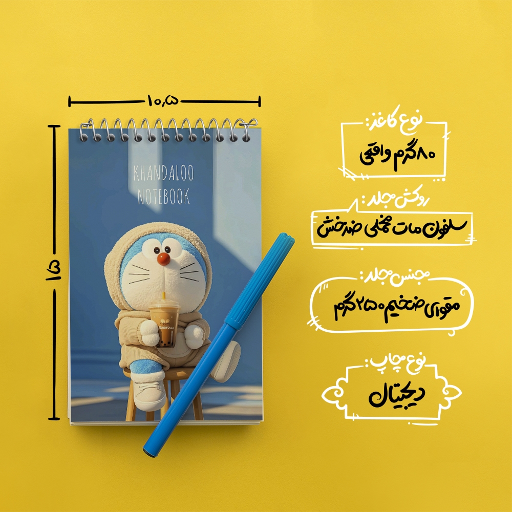 برند خندالو در زمینه تولید انواع دفاتر فانتزی و تحصیلی فعالیت میکند که به دلیل جذابیت ظاهری و طرح های متنوع طرفداران زیادی دارد. دفتر یادداشت خندالو طرح انیمه دورایمون (Doraemon) محصولی مناسب برای همه عاشقان لوازم التحریر است و همچنین همه کسانی که بنا به موقعیت تحصیل یا شغلشان با دفتر و نوشت افزار زیاد سر و کار دارند. در تولید دفتر یادداشت خندالو طرح انیمه دورایمون (Doraemon) از نوع صحافی فنر مارپیچ استفاده شده که در این نوع صحافی برگهها به راحتی چرخیده و یا بیرون آورده می شوند. دفتر های خندالو دارای جلد انعطاف پذیر از جنس مقوای گلاسه 250 گرم با روکش سلفون مات مخملی است که به شما امکان میدهد از دفتر خود بدون اینکه نگرانی از شکستن یا خراب شدن جلد را داشته باشید استفاده کنید و همچنین در این دفاتر از کاغذ 80 گرم با کیفیت استفاده شده که باعث میشود هنگام نوشتن به خوبی جوهر قلم بر روی صفحه نشسته و از خط خوردگیها جلوگیری کند. دفتر یادداشت خندالو با جنس و دوام مناسب، برگه های کاملاً سفید و خطوط طوسی دقیق را داراست که انسان را به نوشتن منظم و زیبا ترغیب میکند. طراحی کاملاً مناسب این دفاتر، به همراه کیفیت بالا، از آن یک محصول مورد علاقه و قابل اعتماد برای همه مقاطع تحصیلی میسازد. دفتر یادداشت خندالو طرح انیمه دورایمون (Doraemon) انتخابی هوشمندانه و مناسب برای افرادی است که به دنبال دفتری با کیفیت و کاربرد عالی هستند. این دفتر، همراه خوبی برای شما در تمام مراحل تحصیل و کار خواهد بود و تجربهای لذتبخش از نوشتن و آموختن را به شما هدیه میدهد.