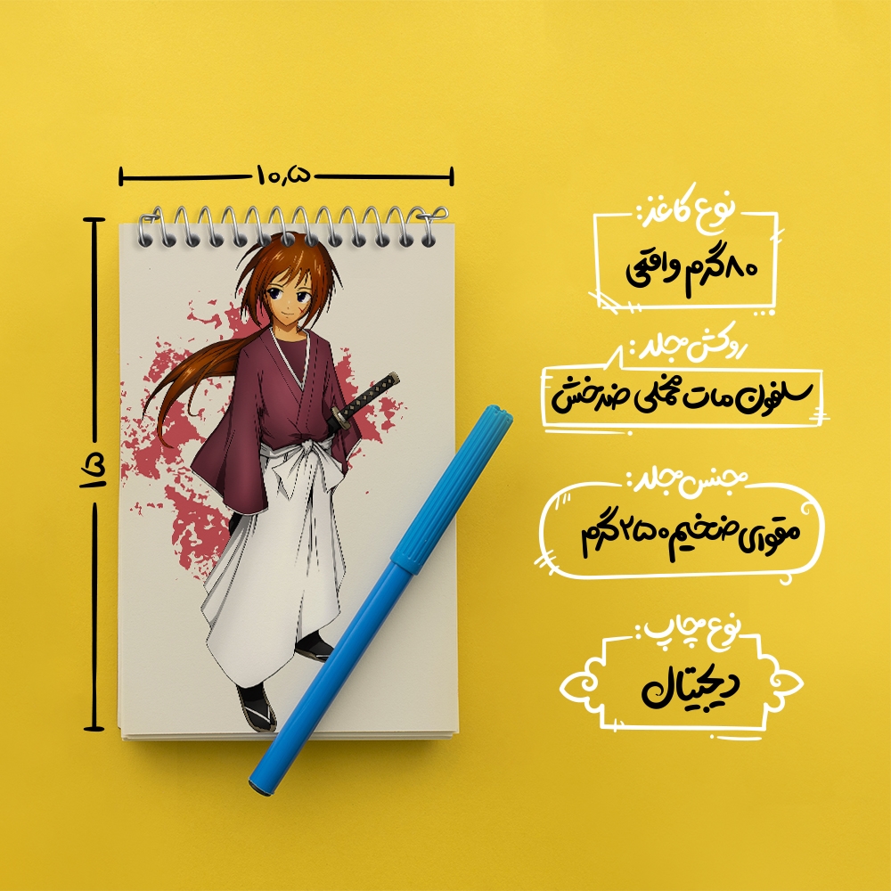 برند خندالو در زمینه تولید انواع دفاتر فانتزی و تحصیلی فعالیت میکند که به دلیل جذابیت ظاهری و طرح های متنوع طرفداران زیادی دارد. دفتر یادداشت خندالو طرح انیمه رورونی کنشین محصولی مناسب برای همه عاشقان لوازم التحریر است و همچنین همه کسانی که بنا به موقعیت تحصیل یا شغلشان با دفتر و نوشت افزار زیاد سر و کار دارند. در تولید دفتر یادداشت خندالو طرح انیمه رورونی کنشین از نوع صحافی فنر مارپیچ استفاده شده که در این نوع صحافی برگه‌ها به راحتی چرخیده و یا بیرون آورده می شوند.