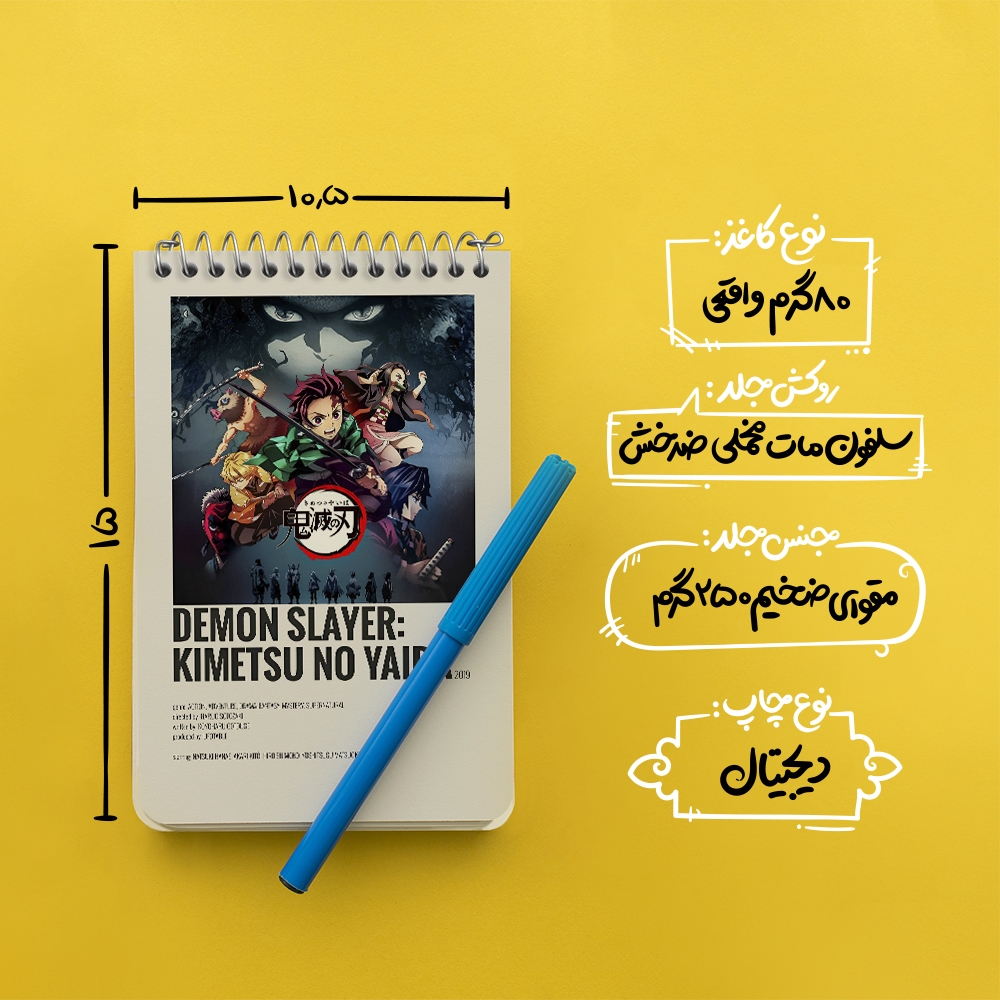 برند خندالو در زمینه تولید انواع دفاتر فانتزی و تحصیلی فعالیت میکند که به دلیل جذابیت ظاهری و طرح های متنوع طرفداران زیادی دارد. دفتر یادداشت خندالو طرح انیمه شیطان کش محصولی مناسب برای همه عاشقان لوازم التحریر است و همچنین همه کسانی که بنا به موقعیت تحصیل یا شغلشان با دفتر و نوشت افزار زیاد سر و کار دارند. در تولید دفتر یادداشت خندالو طرح انیمه شیطان کش از نوع صحافی فنر مارپیچ استفاده شده که در این نوع صحافی برگه‌ها به راحتی چرخیده و یا بیرون آورده می شوند.