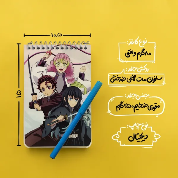 برند خندالو در زمینه تولید انواع دفاتر فانتزی و تحصیلی فعالیت میکند که به دلیل جذابیت ظاهری و طرح های متنوع طرفداران زیادی دارد. دفتر یادداشت خندالو طرح انیمه شیطان کش محصولی مناسب برای همه عاشقان لوازم التحریر است و همچنین همه کسانی که بنا به موقعیت تحصیل یا شغلشان با دفتر و نوشت افزار زیاد سر و کار دارند. در تولید دفتر یادداشت خندالو طرح انیمه شیطان کش از نوع صحافی فنر مارپیچ استفاده شده که در این نوع صحافی برگه‌ها به راحتی چرخیده و یا بیرون آورده می شوند.