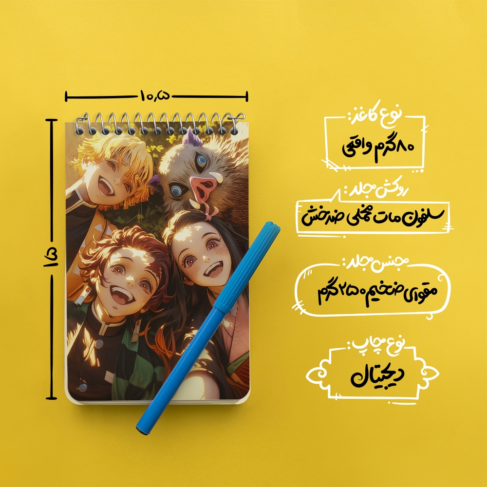 برند خندالو در زمینه تولید انواع دفاتر فانتزی و تحصیلی فعالیت میکند که به دلیل جذابیت ظاهری و طرح های متنوع طرفداران زیادی دارد. دفتر یادداشت خندالو طرح انیمه شیطان کش محصولی مناسب برای همه عاشقان لوازم التحریر است و همچنین همه کسانی که بنا به موقعیت تحصیل یا شغلشان با دفتر و نوشت افزار زیاد سر و کار دارند. در تولید دفتر یادداشت خندالو طرح انیمه شیطان کش از نوع صحافی فنر مارپیچ استفاده شده که در این نوع صحافی برگه‌ها به راحتی چرخیده و یا بیرون آورده می شوند.