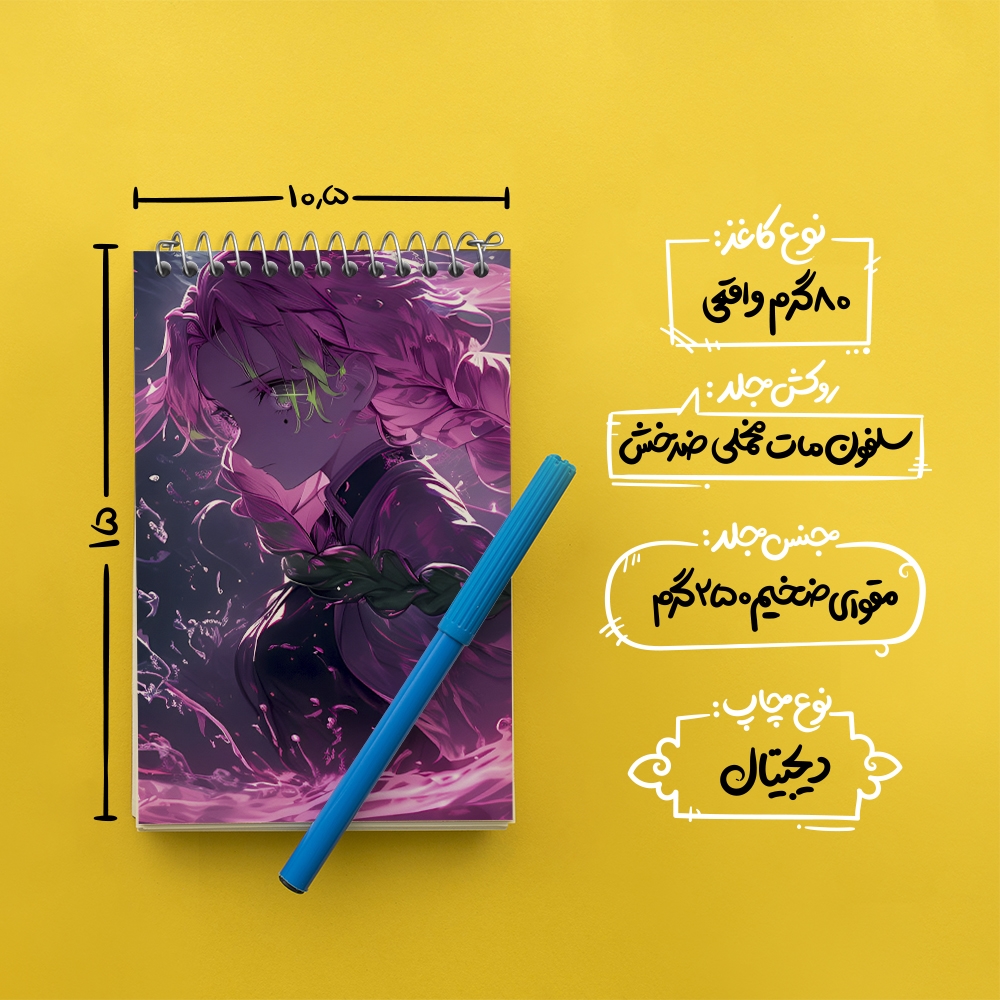 برند خندالو در زمینه تولید انواع دفاتر فانتزی و تحصیلی فعالیت میکند که به دلیل جذابیت ظاهری و طرح های متنوع طرفداران زیادی دارد. دفتر یادداشت خندالو طرح انیمه شیطان کش (Demon Slayer) محصولی مناسب برای همه عاشقان لوازم التحریر است و همچنین همه کسانی که بنا به موقعیت تحصیل یا شغلشان با دفتر و نوشت افزار زیاد سر و کار دارند. در تولید دفتر یادداشت خندالو طرح انیمه شیطان کش (Demon Slayer) از نوع صحافی فنر مارپیچ استفاده شده که در این نوع صحافی برگهها به راحتی چرخیده و یا بیرون آورده می شوند. دفتر های خندالو دارای جلد انعطاف پذیر از جنس مقوای گلاسه 250 گرم با روکش سلفون مات مخملی است که به شما امکان میدهد از دفتر خود بدون اینکه نگرانی از شکستن یا خراب شدن جلد را داشته باشید استفاده کنید و همچنین در این دفاتر از کاغذ 80 گرم با کیفیت استفاده شده که باعث میشود هنگام نوشتن به خوبی جوهر قلم بر روی صفحه نشسته و از خط خوردگیها جلوگیری کند. دفتر یادداشت خندالو با جنس و دوام مناسب، برگه های کاملاً سفید و خطوط طوسی دقیق را داراست که انسان را به نوشتن منظم و زیبا ترغیب میکند. طراحی کاملاً مناسب این دفاتر، به همراه کیفیت بالا، از آن یک محصول مورد علاقه و قابل اعتماد برای همه مقاطع تحصیلی میسازد. دفتر یادداشت خندالو طرح انیمه شیطان کش (Demon Slayer) انتخابی هوشمندانه و مناسب برای افرادی است که به دنبال دفتری با کیفیت و کاربرد عالی هستند. این دفتر، همراه خوبی برای شما در تمام مراحل تحصیل و کار خواهد بود و تجربهای لذتبخش از نوشتن و آموختن را به شما هدیه میدهد.