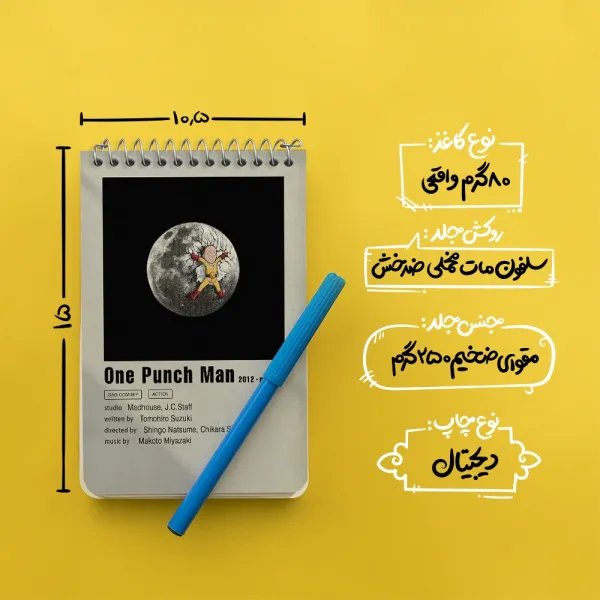 برند خندالو در زمینه تولید انواع دفاتر فانتزی و تحصیلی فعالیت میکند که به دلیل جذابیت ظاهری و طرح های متنوع طرفداران زیادی دارد. دفتر یادداشت خندالو طرح انیمه مرد تک مشتی (One Punch Man) محصولی مناسب برای همه عاشقان لوازم التحریر است و همچنین همه کسانی که بنا به موقعیت تحصیل یا شغلشان با دفتر و نوشت افزار زیاد سر و کار دارند. در تولید دفتر یادداشت خندالو طرح انیمه مرد تک مشتی (One Punch Man) از نوع صحافی فنر مارپیچ استفاده شده که در این نوع صحافی برگهها به راحتی چرخیده و یا بیرون آورده می شوند. دفتر های خندالو دارای جلد انعطاف پذیر از جنس مقوای گلاسه 250 گرم با روکش سلفون مات مخملی است که به شما امکان میدهد از دفتر خود بدون اینکه نگرانی از شکستن یا خراب شدن جلد را داشته باشید استفاده کنید و همچنین در این دفاتر از کاغذ 80 گرم با کیفیت استفاده شده که باعث میشود هنگام نوشتن به خوبی جوهر قلم بر روی صفحه نشسته و از خط خوردگیها جلوگیری کند. دفتر یادداشت خندالو با جنس و دوام مناسب، برگه های کاملاً سفید و خطوط طوسی دقیق را داراست که انسان را به نوشتن منظم و زیبا ترغیب میکند. طراحی کاملاً مناسب این دفاتر، به همراه کیفیت بالا، از آن یک محصول مورد علاقه و قابل اعتماد برای همه مقاطع تحصیلی میسازد. دفتر یادداشت خندالو طرح انیمه مرد تک مشتی (One Punch Man) انتخابی هوشمندانه و مناسب برای افرادی است که به دنبال دفتری با کیفیت و کاربرد عالی هستند. این دفتر، همراه خوبی برای شما در تمام مراحل تحصیل و کار خواهد بود و تجربهای لذتبخش از نوشتن و آموختن را به شما هدیه میدهد.