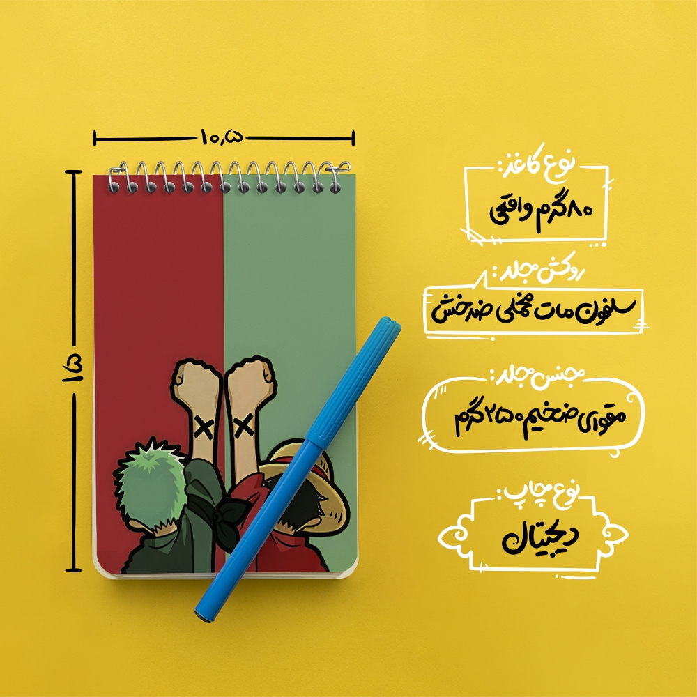 برند خندالو در زمینه تولید انواع دفاتر فانتزی و تحصیلی فعالیت میکند که به دلیل جذابیت ظاهری و طرح های متنوع طرفداران زیادی دارد. دفتر یادداشت خندالو طرح انیمه وان پیس محصولی مناسب برای همه عاشقان لوازم التحریر است و همچنین همه کسانی که بنا به موقعیت تحصیل یا شغلشان با دفتر و نوشت افزار زیاد سر و کار دارند. در تولید دفتر یادداشت خندالو طرح انیمه وان پیس از نوع صحافی فنر مارپیچ استفاده شده که در این نوع صحافی برگهها به راحتی چرخیده و یا بیرون آورده می شوند. دفتر های خندالو دارای جلد انعطاف پذیر از جنس مقوای گلاسه 250 گرم با روکش سلفون مات مخملی است که به شما امکان میدهد از دفتر خود بدون اینکه نگرانی از شکستن یا خراب شدن جلد را داشته باشید استفاده کنید و همچنین در این دفاتر از کاغذ 80 گرم با کیفیت استفاده شده که باعث میشود هنگام نوشتن به خوبی جوهر قلم بر روی صفحه نشسته و از خط خوردگیها جلوگیری کند. دفتر یادداشت خندالو با جنس و دوام مناسب، برگه های کاملاً سفید و خطوط طوسی دقیق را داراست که انسان را به نوشتن منظم و زیبا ترغیب میکند. طراحی کاملاً مناسب این دفاتر، به همراه کیفیت بالا، از آن یک محصول مورد علاقه و قابل اعتماد برای همه مقاطع تحصیلی میسازد. دفتر یادداشت خندالو طرح انیمه وان پیس انتخابی هوشمندانه و مناسب برای افرادی است که به دنبال دفتری با کیفیت و کاربرد عالی هستند. این دفتر، همراه خوبی برای شما در تمام مراحل تحصیل و کار خواهد بود و تجربهای لذتبخش از نوشتن و آموختن را به شما هدیه میدهد.