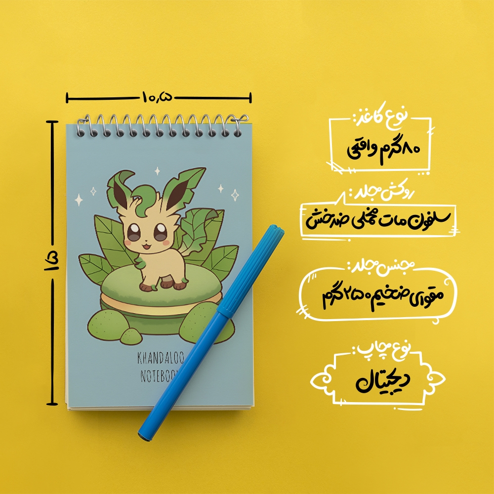 برند خندالو در زمینه تولید انواع دفاتر فانتزی و تحصیلی فعالیت میکند که به دلیل جذابیت ظاهری و طرح های متنوع طرفداران زیادی دارد. دفتر یادداشت خندالو طرح انیمه پوکمون (Pokemon) محصولی مناسب برای همه عاشقان لوازم التحریر است و همچنین همه کسانی که بنا به موقعیت تحصیل یا شغلشان با دفتر و نوشت افزار زیاد سر و کار دارند. در تولید دفتر یادداشت خندالو طرح انیمه پوکمون (Pokemon) از نوع صحافی فنر مارپیچ استفاده شده که در این نوع صحافی برگه‌ها به راحتی چرخیده و یا بیرون آورده می شوند.