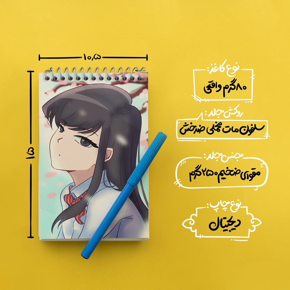 برند خندالو در زمینه تولید انواع دفاتر فانتزی و تحصیلی فعالیت میکند که به دلیل جذابیت ظاهری و طرح های متنوع طرفداران زیادی دارد. دفتر یادداشت خندالو طرح انیمه کومی سان محصولی مناسب برای همه عاشقان لوازم التحریر است و همچنین همه کسانی که بنا به موقعیت تحصیل یا شغلشان با دفتر و نوشت افزار زیاد سر و کار دارند. در تولید دفتر یادداشت خندالو طرح انیمه کومی سان از نوع صحافی فنر مارپیچ استفاده شده که در این نوع صحافی برگه‌ها به راحتی چرخیده و یا بیرون آورده می شوند.