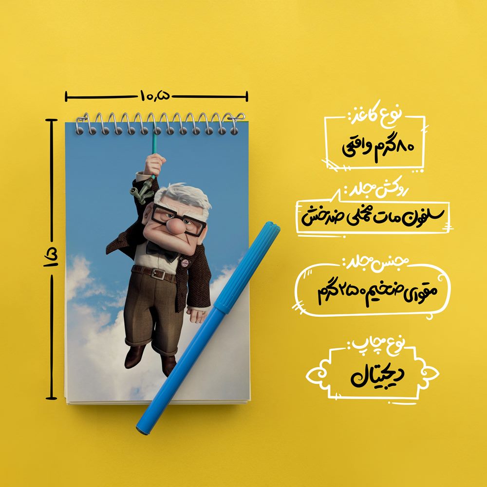 برند خندالو در زمینه تولید انواع دفاتر فانتزی و تحصیلی فعالیت میکند که به دلیل جذابیت ظاهری و طرح های متنوع طرفداران زیادی دارد. دفتر یادداشت خندالو طرح انیمیشن آپ UP محصولی مناسب برای همه عاشقان لوازم التحریر است و همچنین همه کسانی که بنا به موقعیت تحصیل یا شغلشان با دفتر و نوشت افزار زیاد سر و کار دارند. در تولید دفتر یادداشت خندالو طرح انیمیشن آپ UP از نوع صحافی فنر مارپیچ استفاده شده که در این نوع صحافی برگه‌ها به راحتی چرخیده و یا بیرون آورده می شوند.