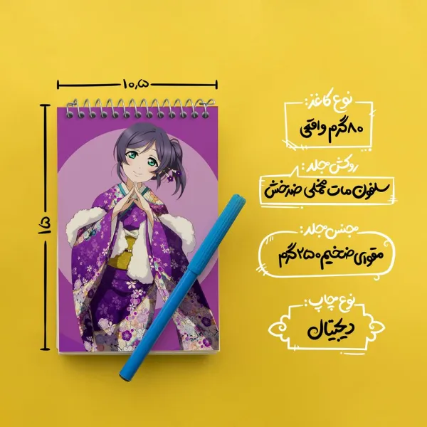 برند خندالو در زمینه تولید انواع دفاتر فانتزی و تحصیلی فعالیت میکند که به دلیل جذابیت ظاهری و طرح های متنوع طرفداران زیادی دارد. دفتر یادداشت خندالو طرح اومی سونادا انیمه لاو لایو Love Live محصولی مناسب برای همه عاشقان لوازم التحریر است و همچنین همه کسانی که بنا به موقعیت تحصیل یا شغلشان با دفتر و نوشت افزار زیاد سر و کار دارند. در تولید دفتر یادداشت خندالو طرح اومی سونادا انیمه لاو لایو Love Live از نوع صحافی فنر مارپیچ استفاده شده که در این نوع صحافی برگهها به راحتی چرخیده و یا بیرون آورده می شوند. دفتر های خندالو دارای جلد انعطاف پذیر از جنس مقوای گلاسه 250 گرم با روکش سلفون مات مخملی است که به شما امکان میدهد از دفتر خود بدون اینکه نگرانی از شکستن یا خراب شدن جلد را داشته باشید استفاده کنید و همچنین در این دفاتر از کاغذ 80 گرم با کیفیت استفاده شده که باعث میشود هنگام نوشتن به خوبی جوهر قلم بر روی صفحه نشسته و از خط خوردگیها جلوگیری کند. دفتر یادداشت خندالو با جنس و دوام مناسب، برگه های کاملاً سفید و خطوط طوسی دقیق را داراست که انسان را به نوشتن منظم و زیبا ترغیب میکند. طراحی کاملاً مناسب این دفاتر، به همراه کیفیت بالا، از آن یک محصول مورد علاقه و قابل اعتماد برای همه مقاطع تحصیلی میسازد. دفتر یادداشت خندالو طرح اومی سونادا انیمه لاو لایو Love Live انتخابی هوشمندانه و مناسب برای افرادی است که به دنبال دفتری با کیفیت و کاربرد عالی هستند. این دفتر، همراه خوبی برای شما در تمام مراحل تحصیل و کار خواهد بود و تجربهای لذتبخش از نوشتن و آموختن را به شما هدیه میدهد.