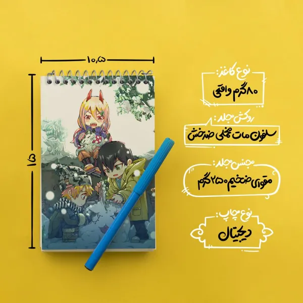 برند خندالو در زمینه تولید انواع دفاتر فانتزی و تحصیلی فعالیت میکند که به دلیل جذابیت ظاهری و طرح های متنوع طرفداران زیادی دارد. دفتر یادداشت خندالو طرح اکی و پاور و دنجی انیمه مرد اره ای Chainsaw Man محصولی مناسب برای همه عاشقان لوازم التحریر است و همچنین همه کسانی که بنا به موقعیت تحصیل یا شغلشان با دفتر و نوشت افزار زیاد سر و کار دارند. در تولید دفتر یادداشت خندالو طرح اکی و پاور و دنجی انیمه مرد اره ای Chainsaw Man از نوع صحافی فنر مارپیچ استفاده شده که در این نوع صحافی برگهها به راحتی چرخیده و یا بیرون آورده می شوند. دفتر های خندالو دارای جلد انعطاف پذیر از جنس مقوای گلاسه 250 گرم با روکش سلفون مات مخملی است که به شما امکان میدهد از دفتر خود بدون اینکه نگرانی از شکستن یا خراب شدن جلد را داشته باشید استفاده کنید و همچنین در این دفاتر از کاغذ 80 گرم با کیفیت استفاده شده که باعث میشود هنگام نوشتن به خوبی جوهر قلم بر روی صفحه نشسته و از خط خوردگیها جلوگیری کند. دفتر یادداشت خندالو با جنس و دوام مناسب، برگه های کاملاً سفید و خطوط طوسی دقیق را داراست که انسان را به نوشتن منظم و زیبا ترغیب میکند. طراحی کاملاً مناسب این دفاتر، به همراه کیفیت بالا، از آن یک محصول مورد علاقه و قابل اعتماد برای همه مقاطع تحصیلی میسازد. دفتر یادداشت خندالو طرح اکی و پاور و دنجی انیمه مرد اره ای Chainsaw Man انتخابی هوشمندانه و مناسب برای افرادی است که به دنبال دفتری با کیفیت و کاربرد عالی هستند. این دفتر، همراه خوبی برای شما در تمام مراحل تحصیل و کار خواهد بود و تجربهای لذتبخش از نوشتن و آموختن را به شما هدیه میدهد.