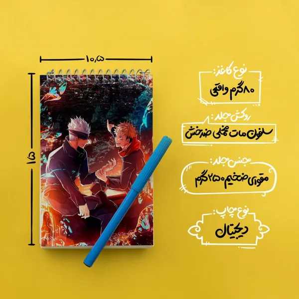 برند خندالو در زمینه تولید انواع دفاتر فانتزی و تحصیلی فعالیت میکند که به دلیل جذابیت ظاهری و طرح های متنوع طرفداران زیادی دارد. دفتر یادداشت خندالو طرح ایتادوری و گوجو انیمه جوجوتسو کایزن محصولی مناسب برای همه عاشقان لوازم التحریر است و همچنین همه کسانی که بنا به موقعیت تحصیل یا شغلشان با دفتر و نوشت افزار زیاد سر و کار دارند. در تولید دفتر یادداشت خندالو طرح ایتادوری و گوجو انیمه جوجوتسو کایزن از نوع صحافی فنر مارپیچ استفاده شده که در این نوع صحافی برگهها به راحتی چرخیده و یا بیرون آورده می شوند. دفتر های خندالو دارای جلد انعطاف پذیر از جنس مقوای گلاسه 250 گرم با روکش سلفون مات مخملی است که به شما امکان میدهد از دفتر خود بدون اینکه نگرانی از شکستن یا خراب شدن جلد را داشته باشید استفاده کنید و همچنین در این دفاتر از کاغذ 80 گرم با کیفیت استفاده شده که باعث میشود هنگام نوشتن به خوبی جوهر قلم بر روی صفحه نشسته و از خط خوردگیها جلوگیری کند. دفتر یادداشت خندالو با جنس و دوام مناسب، برگه های کاملاً سفید و خطوط طوسی دقیق را داراست که انسان را به نوشتن منظم و زیبا ترغیب میکند. طراحی کاملاً مناسب این دفاتر، به همراه کیفیت بالا، از آن یک محصول مورد علاقه و قابل اعتماد برای همه مقاطع تحصیلی میسازد. دفتر یادداشت خندالو طرح ایتادوری و گوجو انیمه جوجوتسو کایزن انتخابی هوشمندانه و مناسب برای افرادی است که به دنبال دفتری با کیفیت و کاربرد عالی هستند. این دفتر، همراه خوبی برای شما در تمام مراحل تحصیل و کار خواهد بود و تجربهای لذتبخش از نوشتن و آموختن را به شما هدیه میدهد.