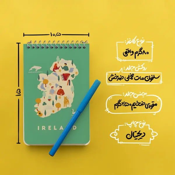 برند خندالو در زمینه تولید انواع دفاتر فانتزی و تحصیلی فعالیت میکند که به دلیل جذابیت ظاهری و طرح های متنوع طرفداران زیادی دارد. دفتر یادداشت خندالو طرح ایرلند (Ireland) محصولی مناسب برای همه عاشقان لوازم التحریر است و همچنین همه کسانی که بنا به موقعیت تحصیل یا شغلشان با دفتر و نوشت افزار زیاد سر و کار دارند. در تولید دفتر یادداشت خندالو طرح ایرلند (Ireland) از نوع صحافی فنر مارپیچ استفاده شده که در این نوع صحافی برگهها به راحتی چرخیده و یا بیرون آورده می شوند. دفتر های خندالو دارای جلد انعطاف پذیر از جنس مقوای گلاسه 250 گرم با روکش سلفون مات مخملی است که به شما امکان میدهد از دفتر خود بدون اینکه نگرانی از شکستن یا خراب شدن جلد را داشته باشید استفاده کنید و همچنین در این دفاتر از کاغذ 80 گرم با کیفیت استفاده شده که باعث میشود هنگام نوشتن به خوبی جوهر قلم بر روی صفحه نشسته و از خط خوردگیها جلوگیری کند. دفتر یادداشت خندالو با جنس و دوام مناسب، برگه های کاملاً سفید و خطوط طوسی دقیق را داراست که انسان را به نوشتن منظم و زیبا ترغیب میکند. طراحی کاملاً مناسب این دفاتر، به همراه کیفیت بالا، از آن یک محصول مورد علاقه و قابل اعتماد برای همه مقاطع تحصیلی میسازد. دفتر یادداشت خندالو طرح ایرلند (Ireland) انتخابی هوشمندانه و مناسب برای افرادی است که به دنبال دفتری با کیفیت و کاربرد عالی هستند. این دفتر، همراه خوبی برای شما در تمام مراحل تحصیل و کار خواهد بود و تجربهای لذتبخش از نوشتن و آموختن را به شما هدیه میدهد.