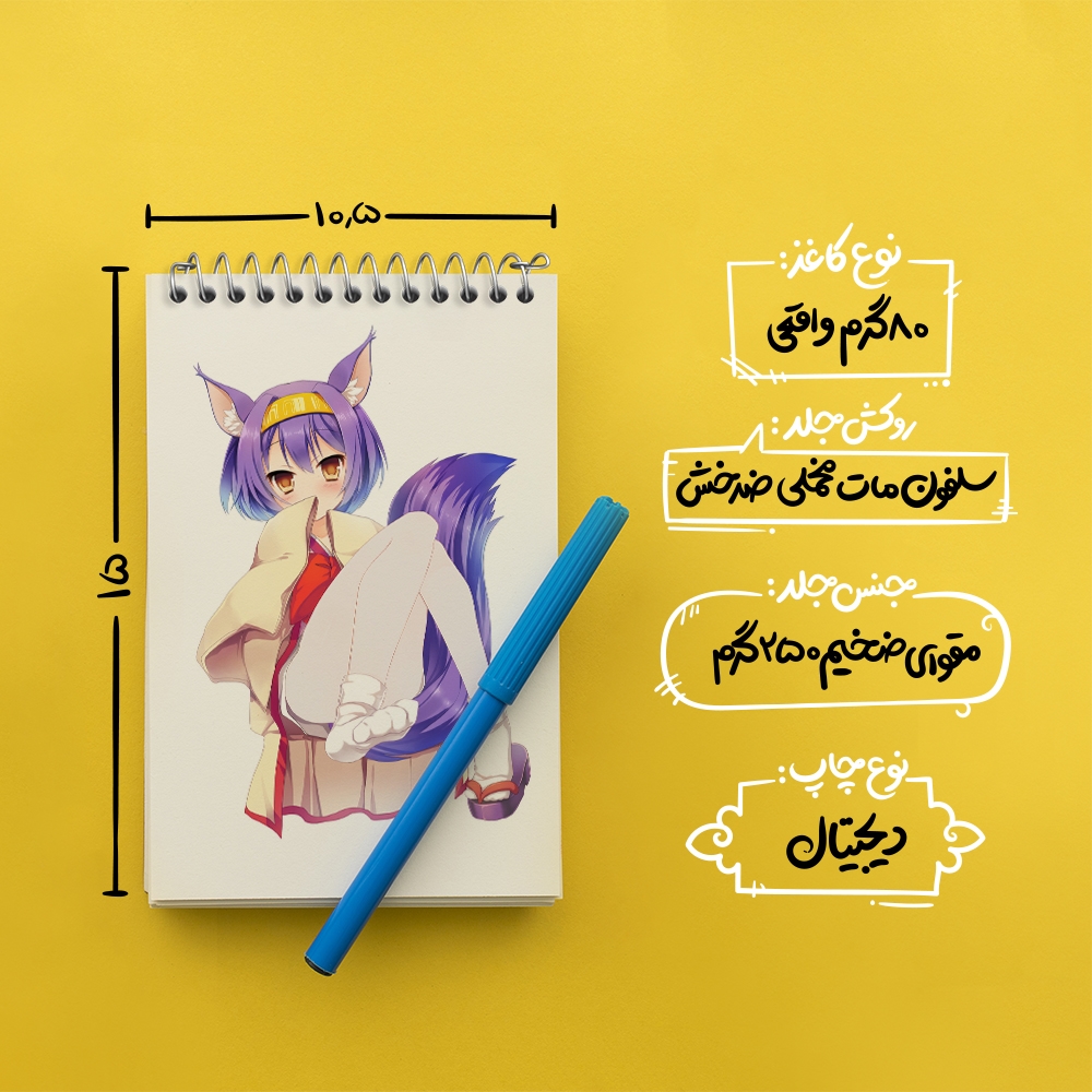 برند خندالو در زمینه تولید انواع دفاتر فانتزی و تحصیلی فعالیت میکند که به دلیل جذابیت ظاهری و طرح های متنوع طرفداران زیادی دارد. دفتر یادداشت خندالو طرح ایزونا انیمه نو گیم نو لایف محصولی مناسب برای همه عاشقان لوازم التحریر است و همچنین همه کسانی که بنا به موقعیت تحصیل یا شغلشان با دفتر و نوشت افزار زیاد سر و کار دارند. در تولید دفتر یادداشت خندالو طرح ایزونا انیمه نو گیم نو لایف از نوع صحافی فنر مارپیچ استفاده شده که در این نوع صحافی برگهها به راحتی چرخیده و یا بیرون آورده می شوند. دفتر های خندالو دارای جلد انعطاف پذیر از جنس مقوای گلاسه 250 گرم با روکش سلفون مات مخملی است که به شما امکان میدهد از دفتر خود بدون اینکه نگرانی از شکستن یا خراب شدن جلد را داشته باشید استفاده کنید و همچنین در این دفاتر از کاغذ 80 گرم با کیفیت استفاده شده که باعث میشود هنگام نوشتن به خوبی جوهر قلم بر روی صفحه نشسته و از خط خوردگیها جلوگیری کند. دفتر یادداشت خندالو با جنس و دوام مناسب، برگه های کاملاً سفید و خطوط طوسی دقیق را داراست که انسان را به نوشتن منظم و زیبا ترغیب میکند. طراحی کاملاً مناسب این دفاتر، به همراه کیفیت بالا، از آن یک محصول مورد علاقه و قابل اعتماد برای همه مقاطع تحصیلی میسازد. دفتر یادداشت خندالو طرح ایزونا انیمه نو گیم نو لایف انتخابی هوشمندانه و مناسب برای افرادی است که به دنبال دفتری با کیفیت و کاربرد عالی هستند. این دفتر، همراه خوبی برای شما در تمام مراحل تحصیل و کار خواهد بود و تجربهای لذتبخش از نوشتن و آموختن را به شما هدیه میدهد.