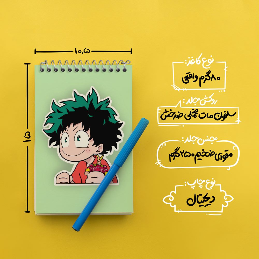برند خندالو در زمینه تولید انواع دفاتر فانتزی و تحصیلی فعالیت میکند که به دلیل جذابیت ظاهری و طرح های متنوع طرفداران زیادی دارد. دفتر یادداشت خندالو طرح ایزوکو میدوریا انیمه آکادمی قهرمان من My Hero Academia محصولی مناسب برای همه عاشقان لوازم التحریر است و همچنین همه کسانی که بنا به موقعیت تحصیل یا شغلشان با دفتر و نوشت افزار زیاد سر و کار دارند. در تولید دفتر یادداشت خندالو طرح ایزوکو میدوریا انیمه آکادمی قهرمان من My Hero Academia از نوع صحافی فنر مارپیچ استفاده شده که در این نوع صحافی برگهها به راحتی چرخیده و یا بیرون آورده می شوند. دفتر های خندالو دارای جلد انعطاف پذیر از جنس مقوای گلاسه 250 گرم با روکش سلفون مات مخملی است که به شما امکان میدهد از دفتر خود بدون اینکه نگرانی از شکستن یا خراب شدن جلد را داشته باشید استفاده کنید و همچنین در این دفاتر از کاغذ 80 گرم با کیفیت استفاده شده که باعث میشود هنگام نوشتن به خوبی جوهر قلم بر روی صفحه نشسته و از خط خوردگیها جلوگیری کند. دفتر یادداشت خندالو با جنس و دوام مناسب، برگه های کاملاً سفید و خطوط طوسی دقیق را داراست که انسان را به نوشتن منظم و زیبا ترغیب میکند. طراحی کاملاً مناسب این دفاتر، به همراه کیفیت بالا، از آن یک محصول مورد علاقه و قابل اعتماد برای همه مقاطع تحصیلی میسازد. دفتر یادداشت خندالو طرح ایزوکو میدوریا انیمه آکادمی قهرمان من My Hero Academia انتخابی هوشمندانه و مناسب برای افرادی است که به دنبال دفتری با کیفیت و کاربرد عالی هستند. این دفتر، همراه خوبی برای شما در تمام مراحل تحصیل و کار خواهد بود و تجربهای لذتبخش از نوشتن و آموختن را به شما هدیه میدهد.