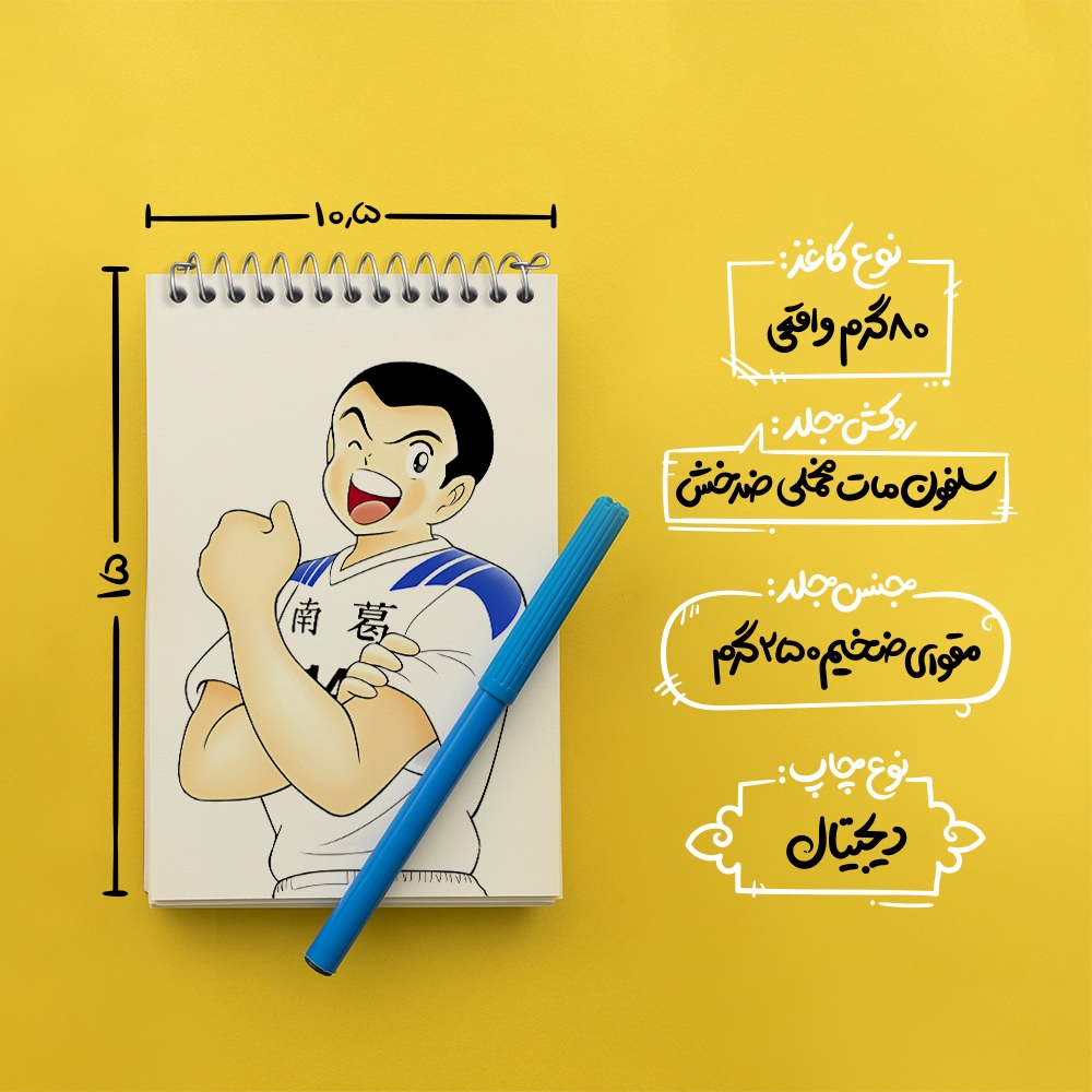 برند خندالو در زمینه تولید انواع دفاتر فانتزی و تحصیلی فعالیت میکند که به دلیل جذابیت ظاهری و طرح های متنوع طرفداران زیادی دارد. دفتر یادداشت خندالو طرح ایشی زاکی فوتبالیست ها محصولی مناسب برای همه عاشقان لوازم التحریر است و همچنین همه کسانی که بنا به موقعیت تحصیل یا شغلشان با دفتر و نوشت افزار زیاد سر و کار دارند. در تولید دفتر یادداشت خندالو طرح ایشی زاکی فوتبالیست ها از نوع صحافی فنر مارپیچ استفاده شده که در این نوع صحافی برگهها به راحتی چرخیده و یا بیرون آورده می شوند. دفتر های خندالو دارای جلد انعطاف پذیر از جنس مقوای گلاسه 250 گرم با روکش سلفون مات مخملی است که به شما امکان میدهد از دفتر خود بدون اینکه نگرانی از شکستن یا خراب شدن جلد را داشته باشید استفاده کنید و همچنین در این دفاتر از کاغذ 80 گرم با کیفیت استفاده شده که باعث میشود هنگام نوشتن به خوبی جوهر قلم بر روی صفحه نشسته و از خط خوردگیها جلوگیری کند. دفتر یادداشت خندالو با جنس و دوام مناسب، برگه های کاملاً سفید و خطوط طوسی دقیق را داراست که انسان را به نوشتن منظم و زیبا ترغیب میکند. طراحی کاملاً مناسب این دفاتر، به همراه کیفیت بالا، از آن یک محصول مورد علاقه و قابل اعتماد برای همه مقاطع تحصیلی میسازد. دفتر یادداشت خندالو طرح ایشی زاکی فوتبالیست ها انتخابی هوشمندانه و مناسب برای افرادی است که به دنبال دفتری با کیفیت و کاربرد عالی هستند. این دفتر، همراه خوبی برای شما در تمام مراحل تحصیل و کار خواهد بود و تجربهای لذتبخش از نوشتن و آموختن را به شما هدیه میدهد.