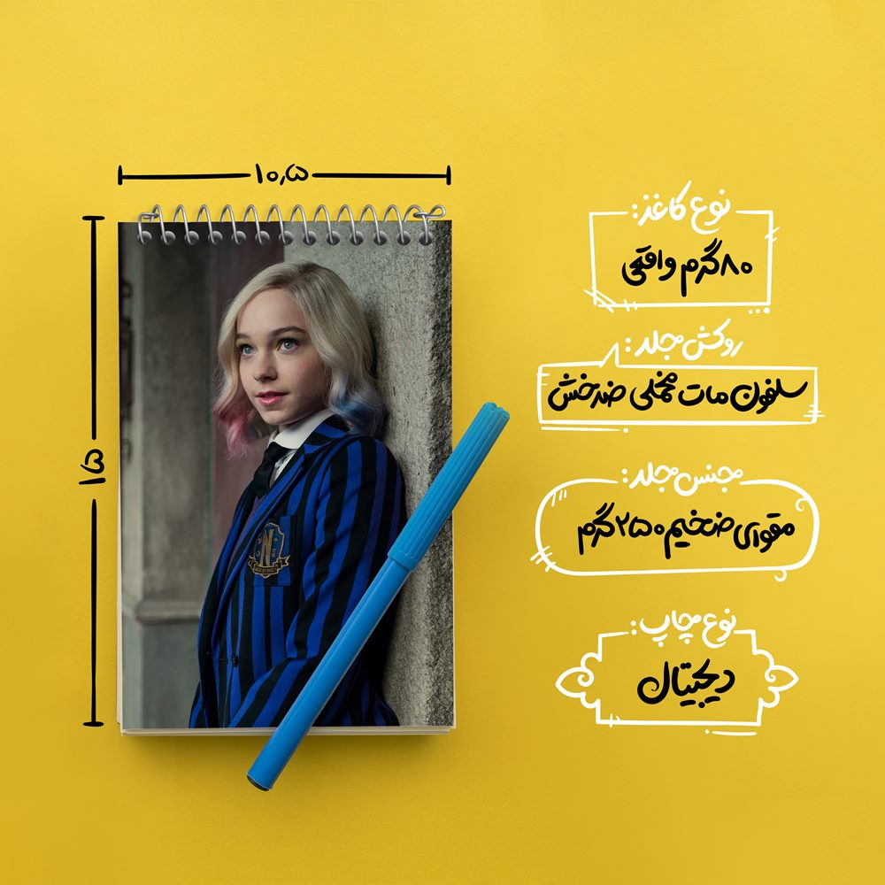 برند خندالو در زمینه تولید انواع دفاتر فانتزی و تحصیلی فعالیت میکند که به دلیل جذابیت ظاهری و طرح های متنوع طرفداران زیادی دارد. دفتر یادداشت خندالو طرح ایند ونزدی Wednesday محصولی مناسب برای همه عاشقان لوازم التحریر است و همچنین همه کسانی که بنا به موقعیت تحصیل یا شغلشان با دفتر و نوشت افزار زیاد سر و کار دارند. در تولید دفتر یادداشت خندالو طرح ایند ونزدی Wednesday از نوع صحافی فنر مارپیچ استفاده شده که در این نوع صحافی برگهها به راحتی چرخیده و یا بیرون آورده می شوند. دفتر های خندالو دارای جلد انعطاف پذیر از جنس مقوای گلاسه 250 گرم با روکش سلفون مات مخملی است که به شما امکان میدهد از دفتر خود بدون اینکه نگرانی از شکستن یا خراب شدن جلد را داشته باشید استفاده کنید و همچنین در این دفاتر از کاغذ 80 گرم با کیفیت استفاده شده که باعث میشود هنگام نوشتن به خوبی جوهر قلم بر روی صفحه نشسته و از خط خوردگیها جلوگیری کند. دفتر یادداشت خندالو با جنس و دوام مناسب، برگه های کاملاً سفید و خطوط طوسی دقیق را داراست که انسان را به نوشتن منظم و زیبا ترغیب میکند. طراحی کاملاً مناسب این دفاتر، به همراه کیفیت بالا، از آن یک محصول مورد علاقه و قابل اعتماد برای همه مقاطع تحصیلی میسازد. دفتر یادداشت خندالو طرح ایند ونزدی Wednesday انتخابی هوشمندانه و مناسب برای افرادی است که به دنبال دفتری با کیفیت و کاربرد عالی هستند. این دفتر، همراه خوبی برای شما در تمام مراحل تحصیل و کار خواهد بود و تجربهای لذتبخش از نوشتن و آموختن را به شما هدیه میدهد.