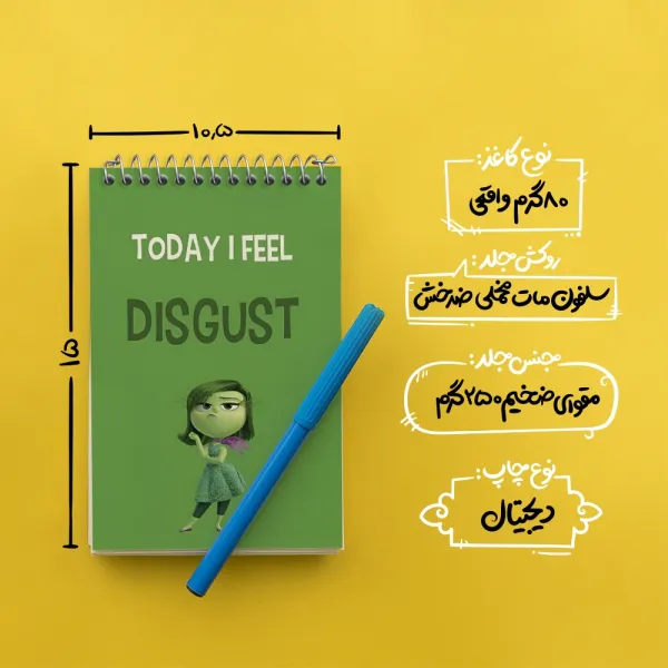 برند خندالو در زمینه تولید انواع دفاتر فانتزی و تحصیلی فعالیت میکند که به دلیل جذابیت ظاهری و طرح های متنوع طرفداران زیادی دارد. دفتر یادداشت خندالو طرح اینساید اوت (Disgust) محصولی مناسب برای همه عاشقان لوازم التحریر است و همچنین همه کسانی که بنا به موقعیت تحصیل یا شغلشان با دفتر و نوشت افزار زیاد سر و کار دارند. در تولید دفتر یادداشت خندالو طرح اینساید اوت (Disgust) از نوع صحافی فنر مارپیچ استفاده شده که در این نوع صحافی برگهها به راحتی چرخیده و یا بیرون آورده می شوند. دفتر های خندالو دارای جلد انعطاف پذیر از جنس مقوای گلاسه 250 گرم با روکش سلفون مات مخملی است که به شما امکان میدهد از دفتر خود بدون اینکه نگرانی از شکستن یا خراب شدن جلد را داشته باشید استفاده کنید و همچنین در این دفاتر از کاغذ 80 گرم با کیفیت استفاده شده که باعث میشود هنگام نوشتن به خوبی جوهر قلم بر روی صفحه نشسته و از خط خوردگیها جلوگیری کند. دفتر یادداشت خندالو با جنس و دوام مناسب، برگه های کاملاً سفید و خطوط طوسی دقیق را داراست که انسان را به نوشتن منظم و زیبا ترغیب میکند. طراحی کاملاً مناسب این دفاتر، به همراه کیفیت بالا، از آن یک محصول مورد علاقه و قابل اعتماد برای همه مقاطع تحصیلی میسازد. دفتر یادداشت خندالو طرح اینساید اوت (Disgust) انتخابی هوشمندانه و مناسب برای افرادی است که به دنبال دفتری با کیفیت و کاربرد عالی هستند. این دفتر، همراه خوبی برای شما در تمام مراحل تحصیل و کار خواهد بود و تجربهای لذتبخش از نوشتن و آموختن را به شما هدیه میدهد.